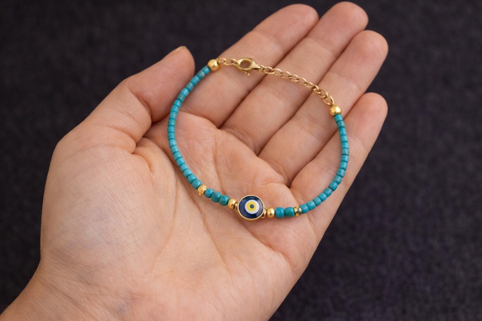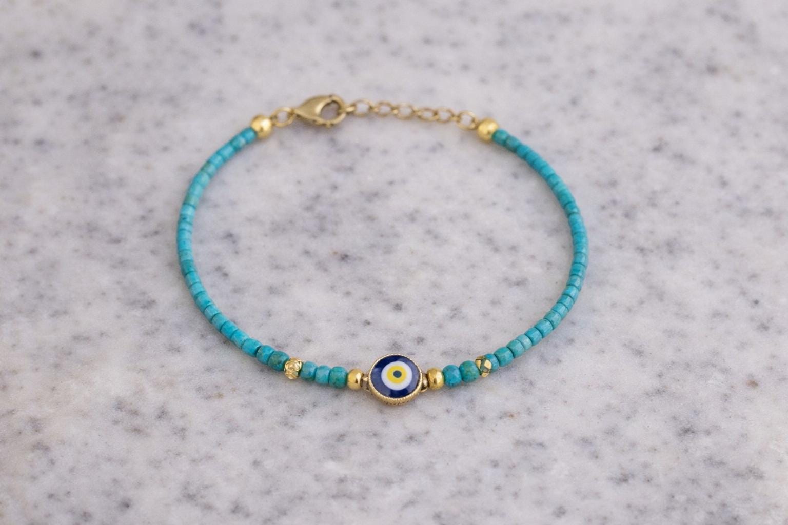 This elegant handmade bracelet features vibrant green faceted beads accented with gold-tone details and a classic Turkish evil eye charm. Designed to bring protection and positive energy, it is perfect for everyday wear or as a meaningful gift.