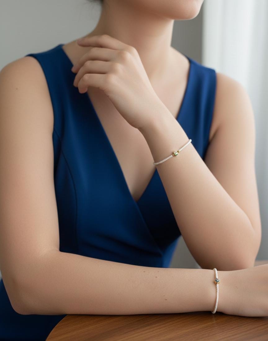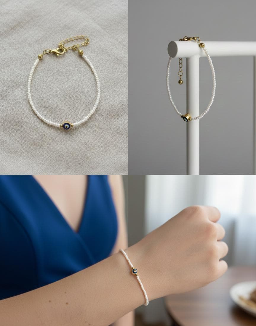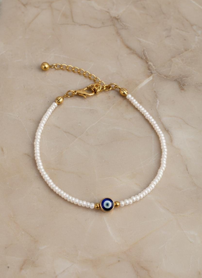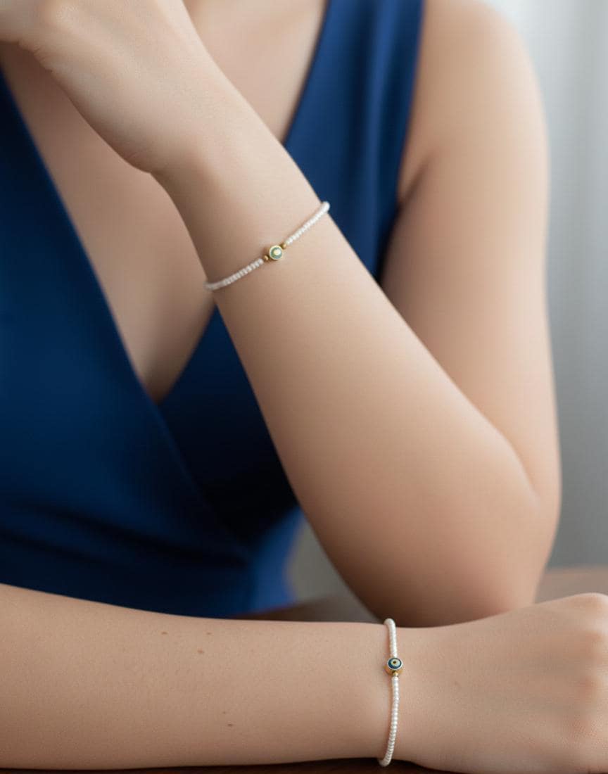 ✨ Minimal Pearl Evil Eye Bracelet