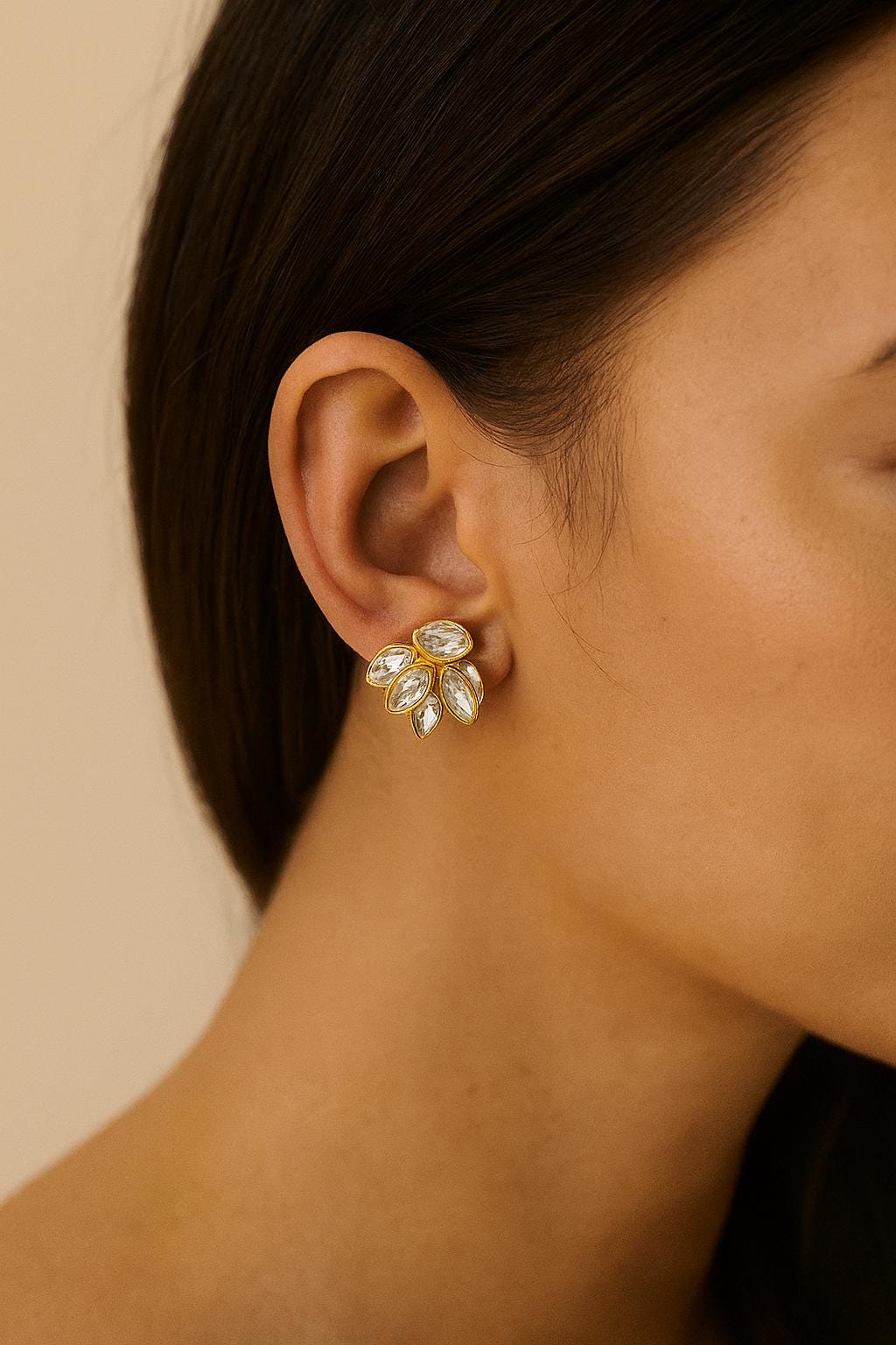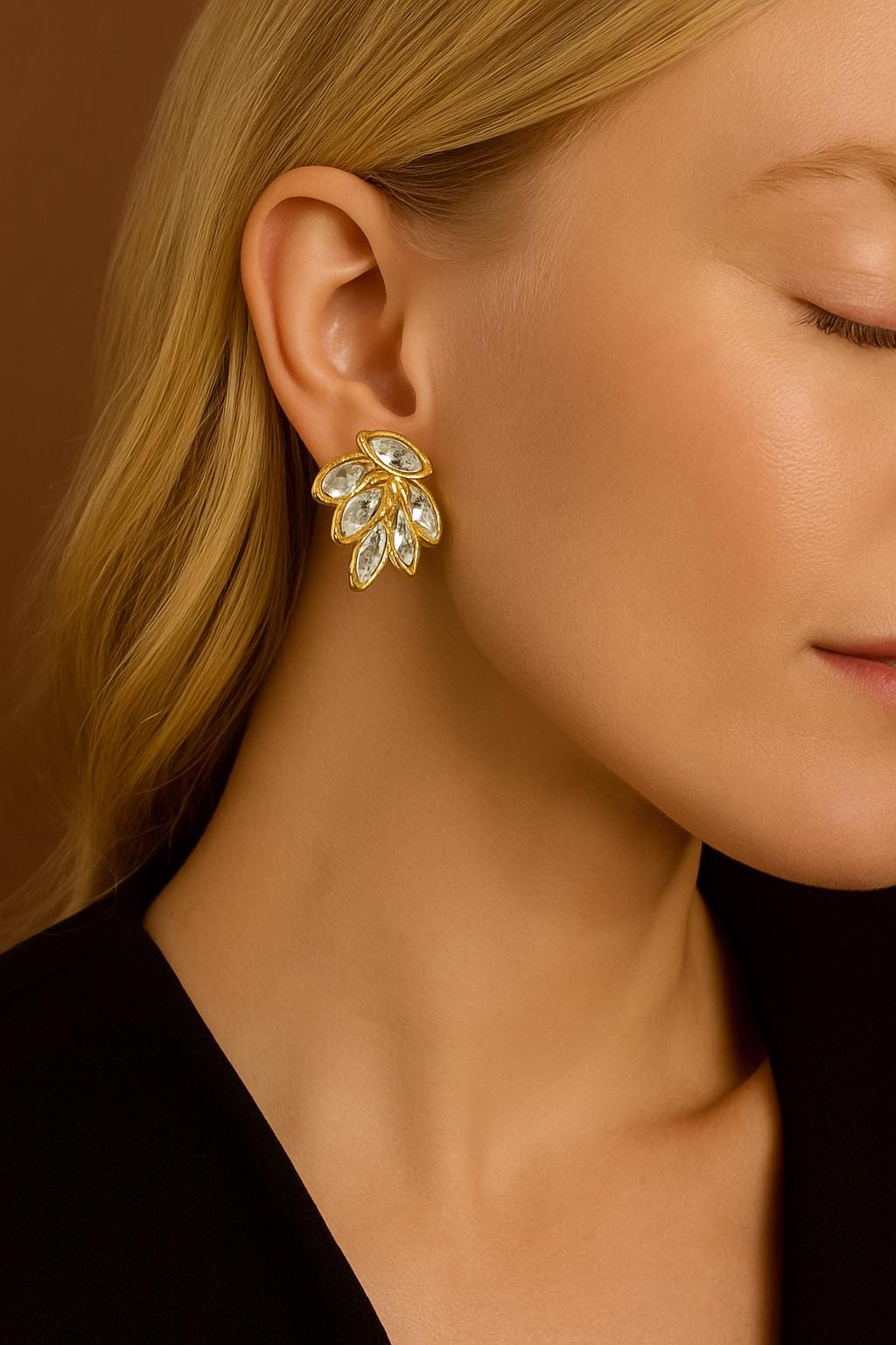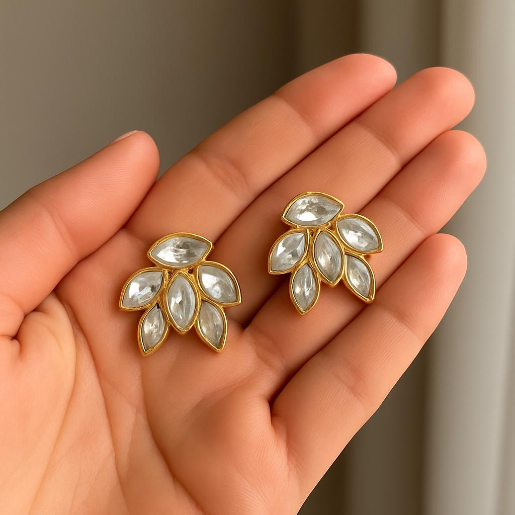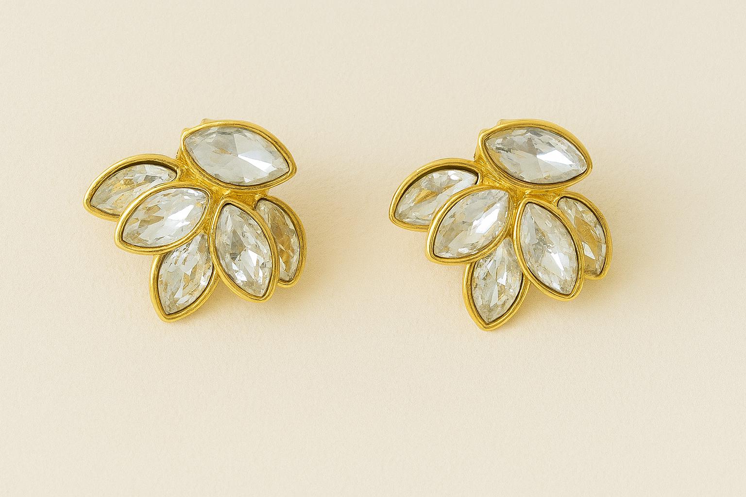 Add a touch of vintage elegance to your look with these stunning gold leaf crystal stud earrings. Featuring marquise-cut crystals in a layered leaf design, these earrings are perfect for weddings, special occasions, or everyday glam. The gold-tone setting brings out the brilliance of each stone, making them a versatile and eye-catching addition to your jewelry collection.