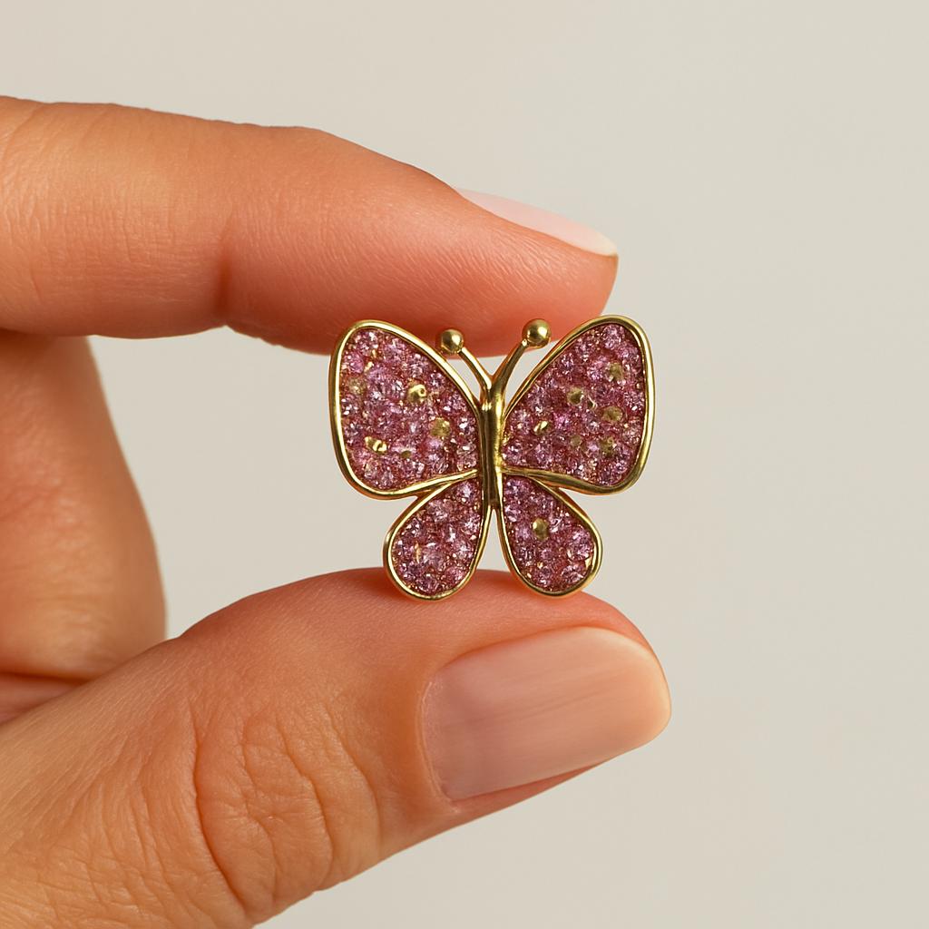 – Butterfly shape with shimmering pink crystals