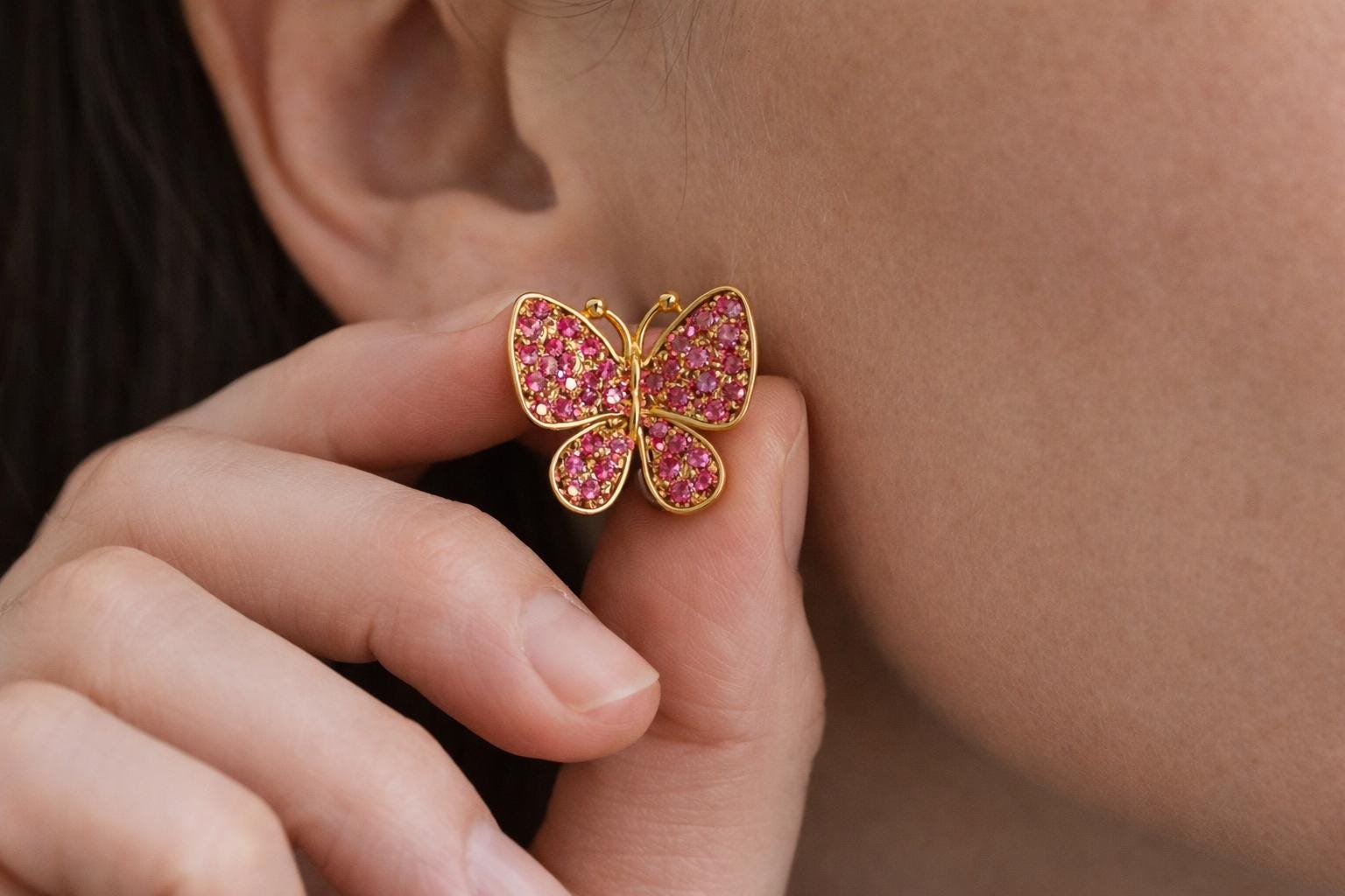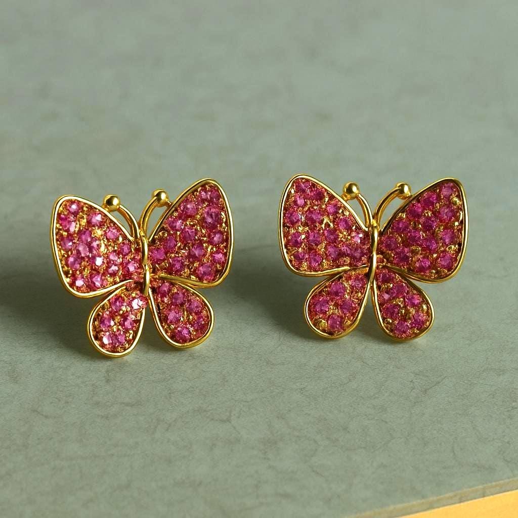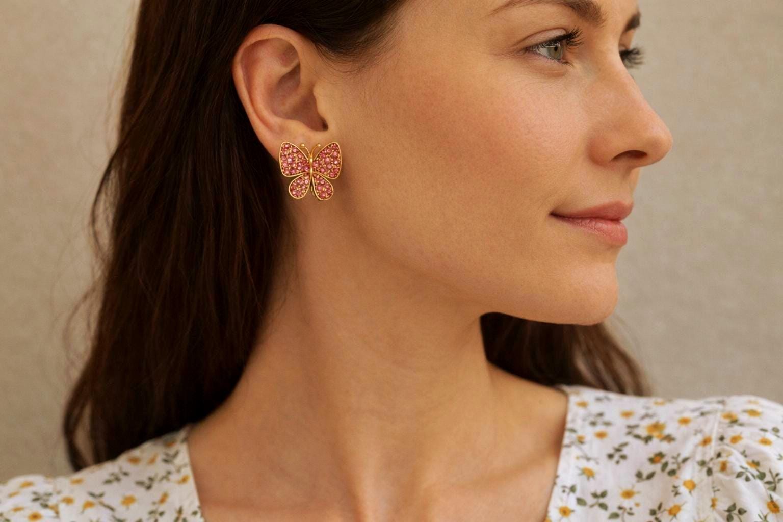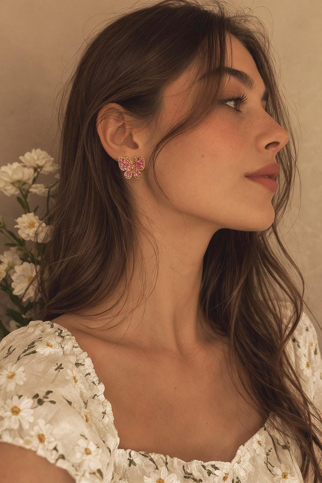 Add a touch of sparkle and whimsy to your look with these pink crystal butterfly earrings 🦋