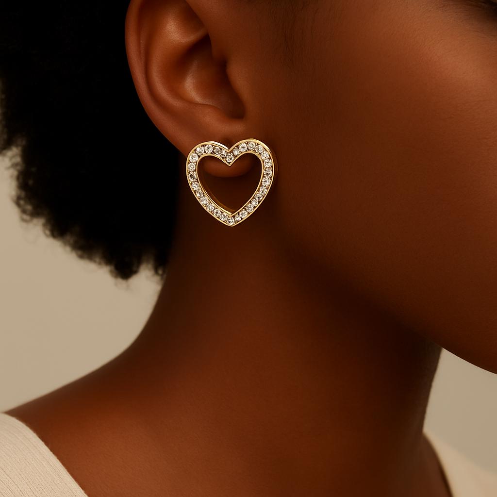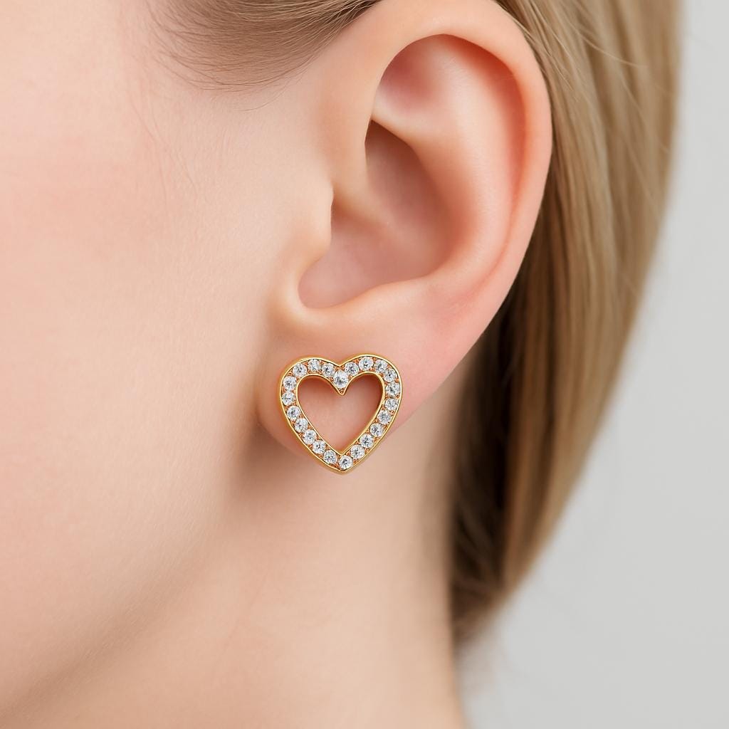 Add a touch of sparkle and elegance to your everyday style with these stunning Crystal Heart Stud Earrings. Designed in a charming open-heart shape and adorned with shimmering zirconia stones, these gold-plated earrings are the perfect accessory for both casual and special occasions.