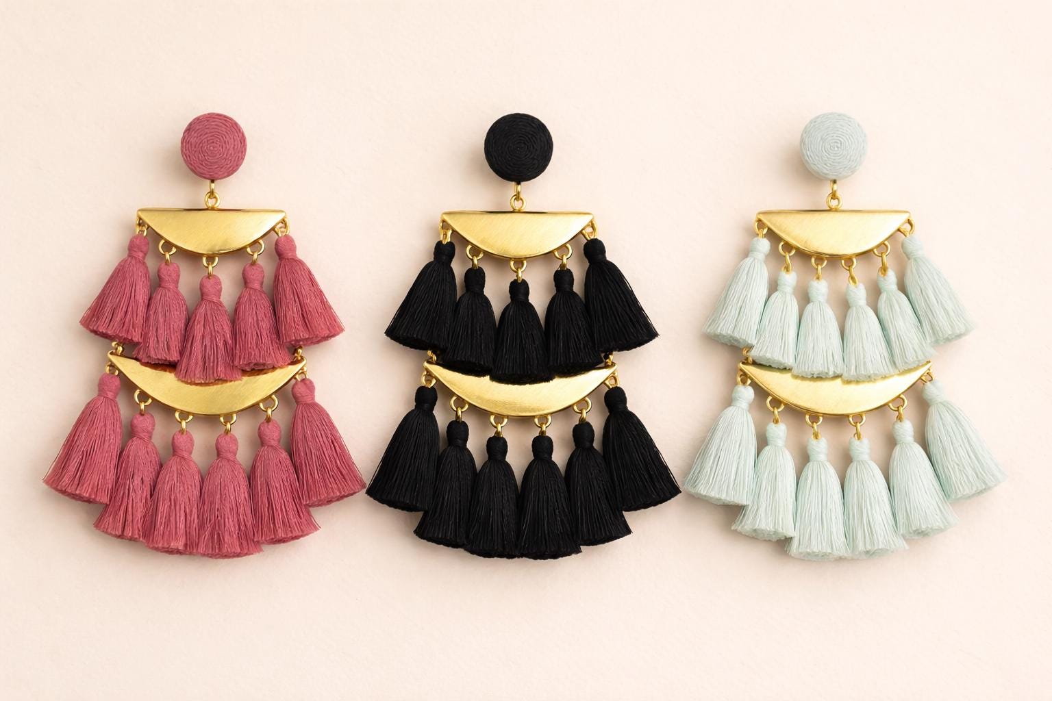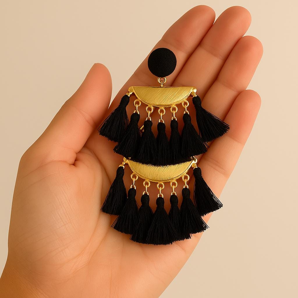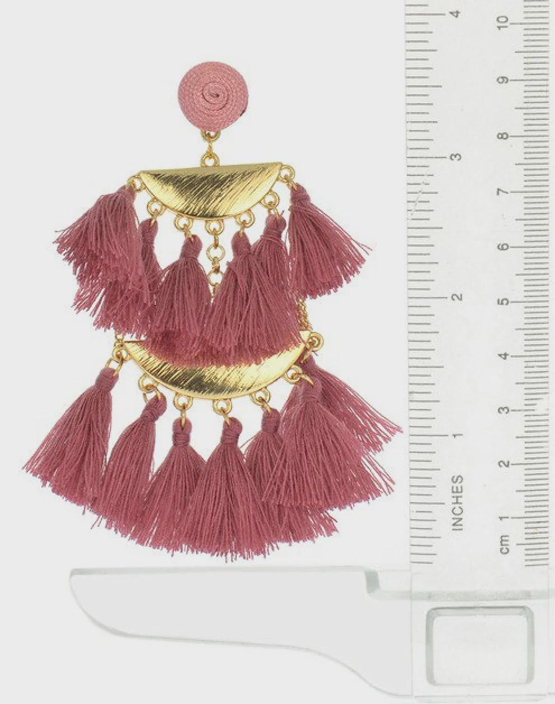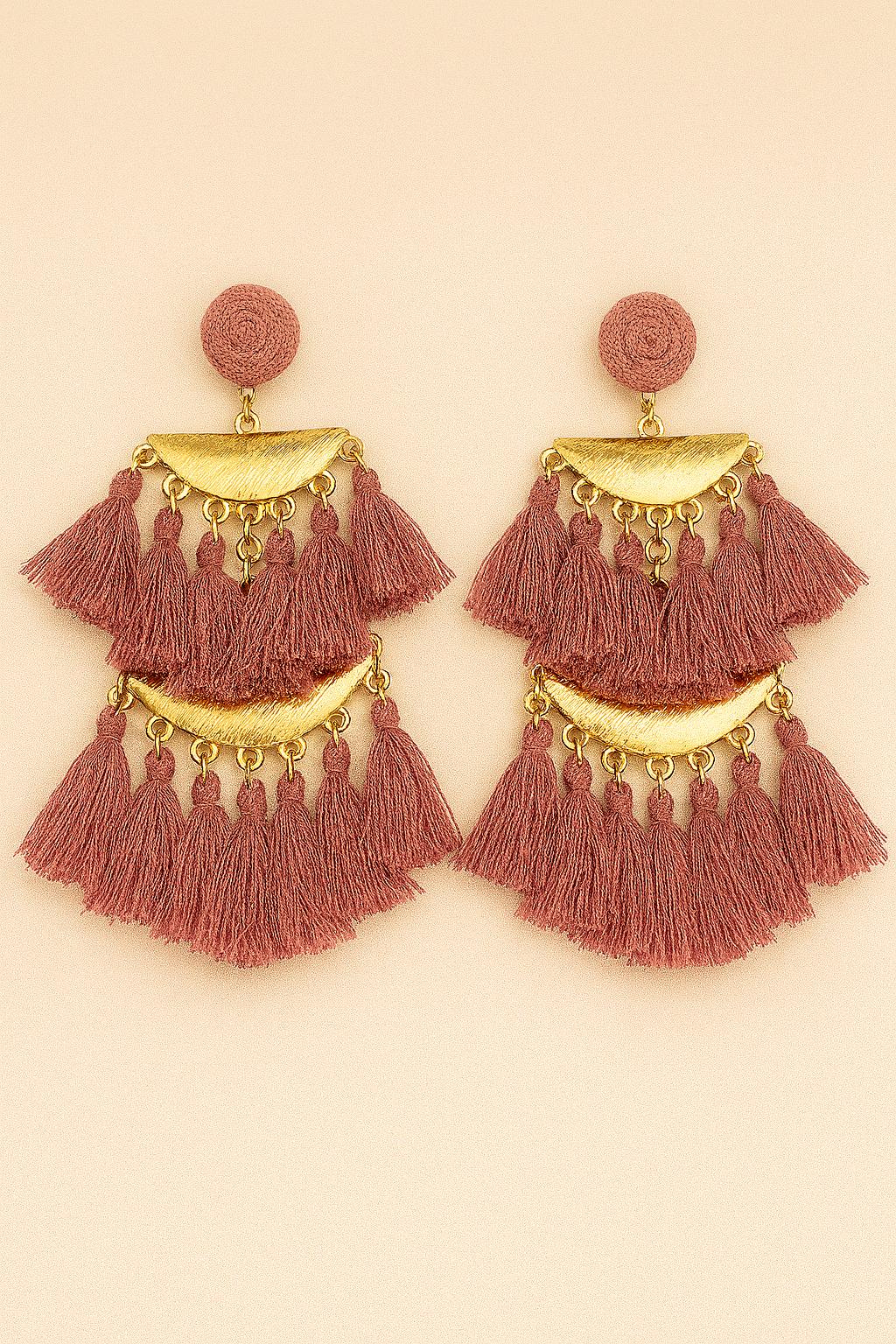 Make a bold statement with our handmade Boho Statement Tassel Earrings, available in Pink, Black, and White. These stunning earrings feature layered fringe tassels, elegant gold-tone hardware, and a lightweight feel for all-day comfort. Whether you're heading to a summer festival, brunch with friends, or just want to elevate your everyday look, these earrings add the perfect touch of bohemian glam.