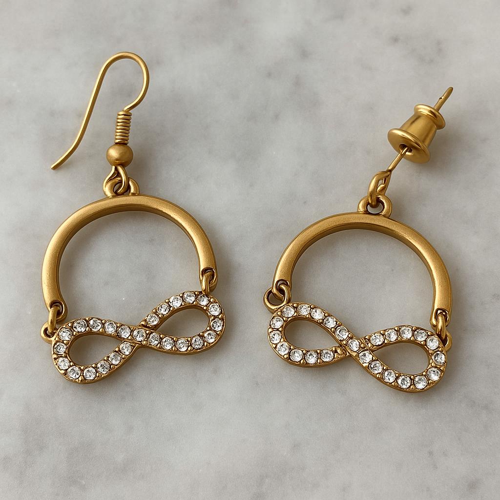 Add a touch of elegance and meaning to your look with these beautiful Gold Infinity Dangle Earrings. Designed with sparkling crystals set in a classic infinity symbol, these earrings symbolize eternal love, balance, and timeless beauty.