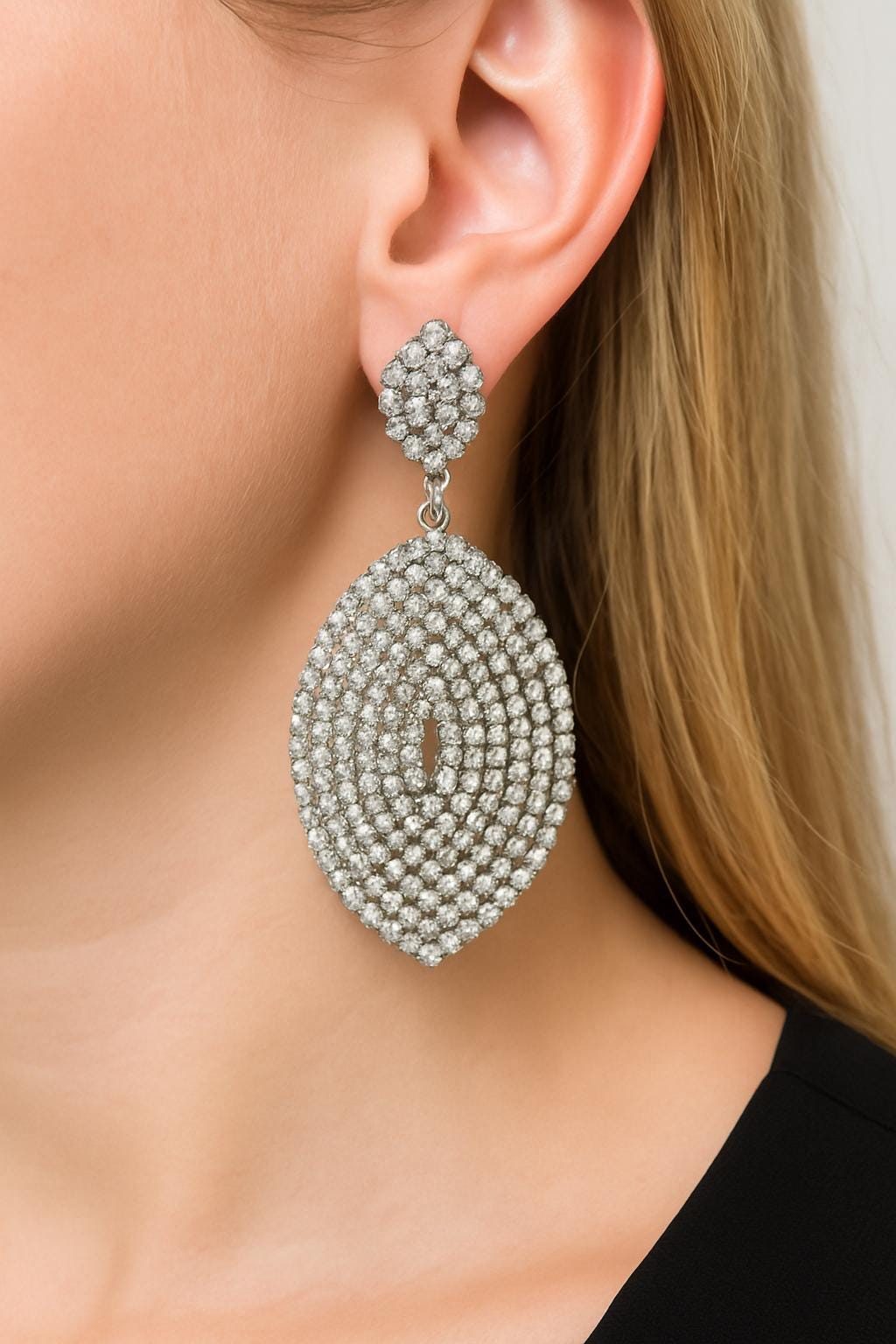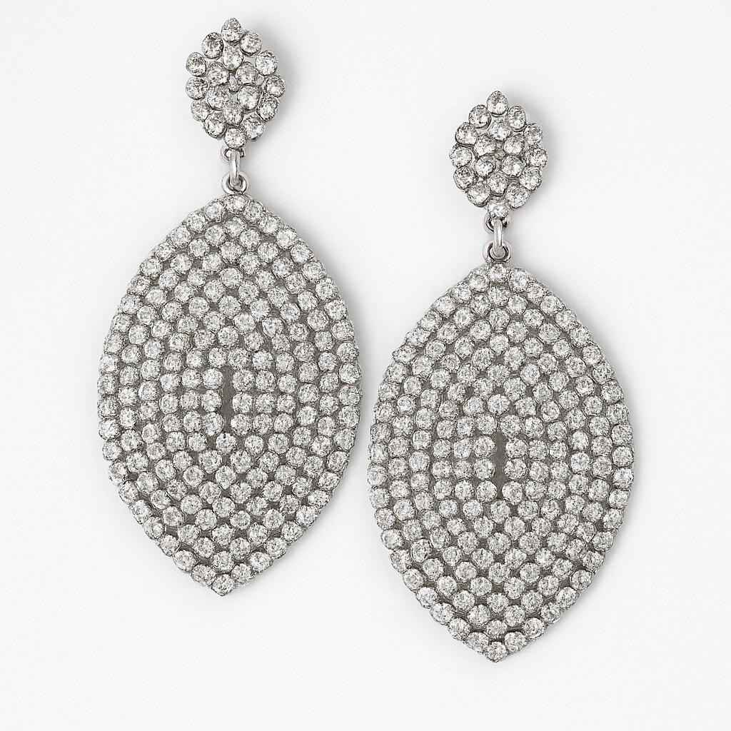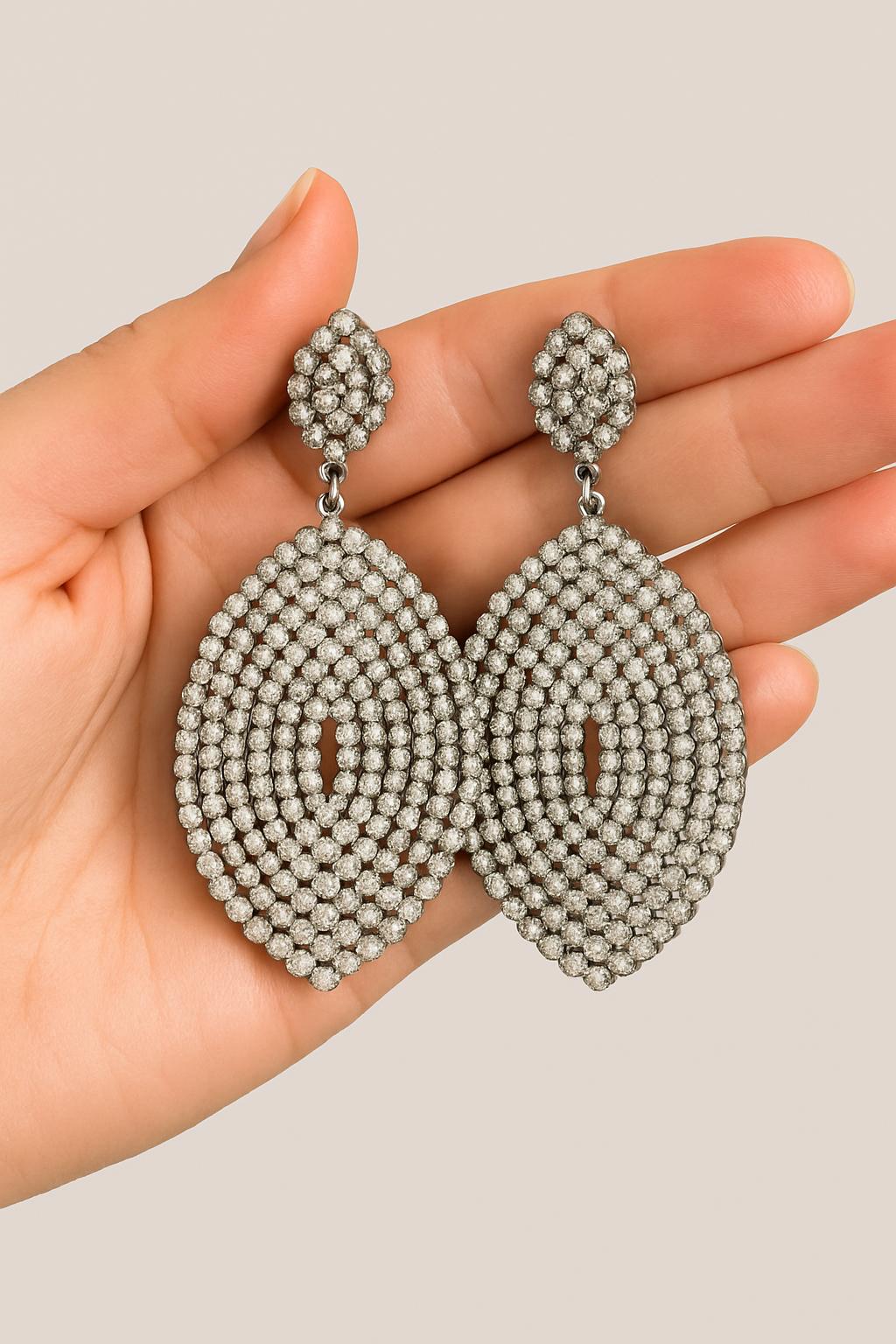 Make a bold and glamorous statement with these silver crystal statement earrings. Handcrafted with precision, these earrings feature hundreds of sparkling rhinestones arranged in a stunning teardrop design. Perfect for weddings, parties, or any special occasion where you want to shine effortlessly.