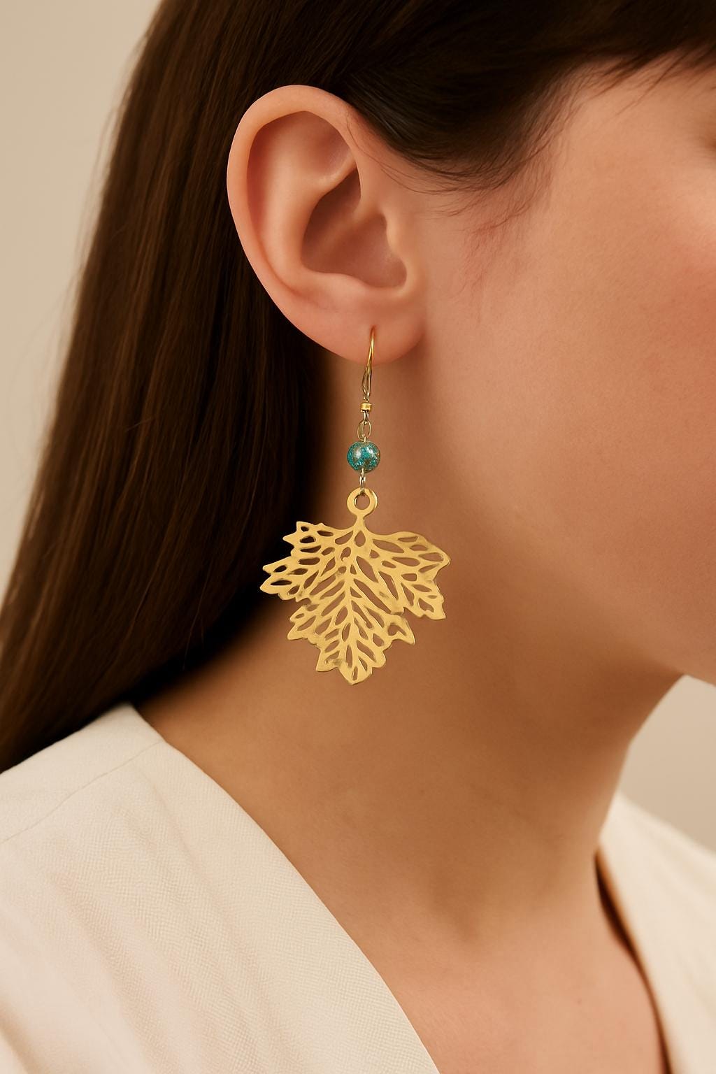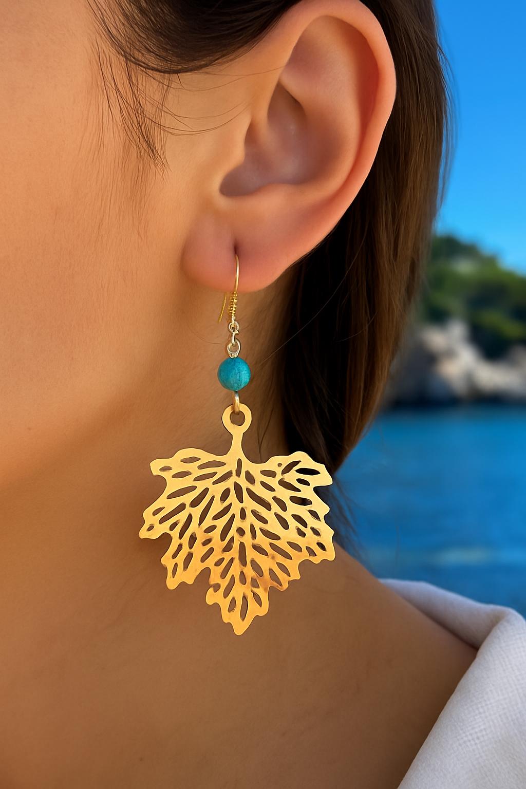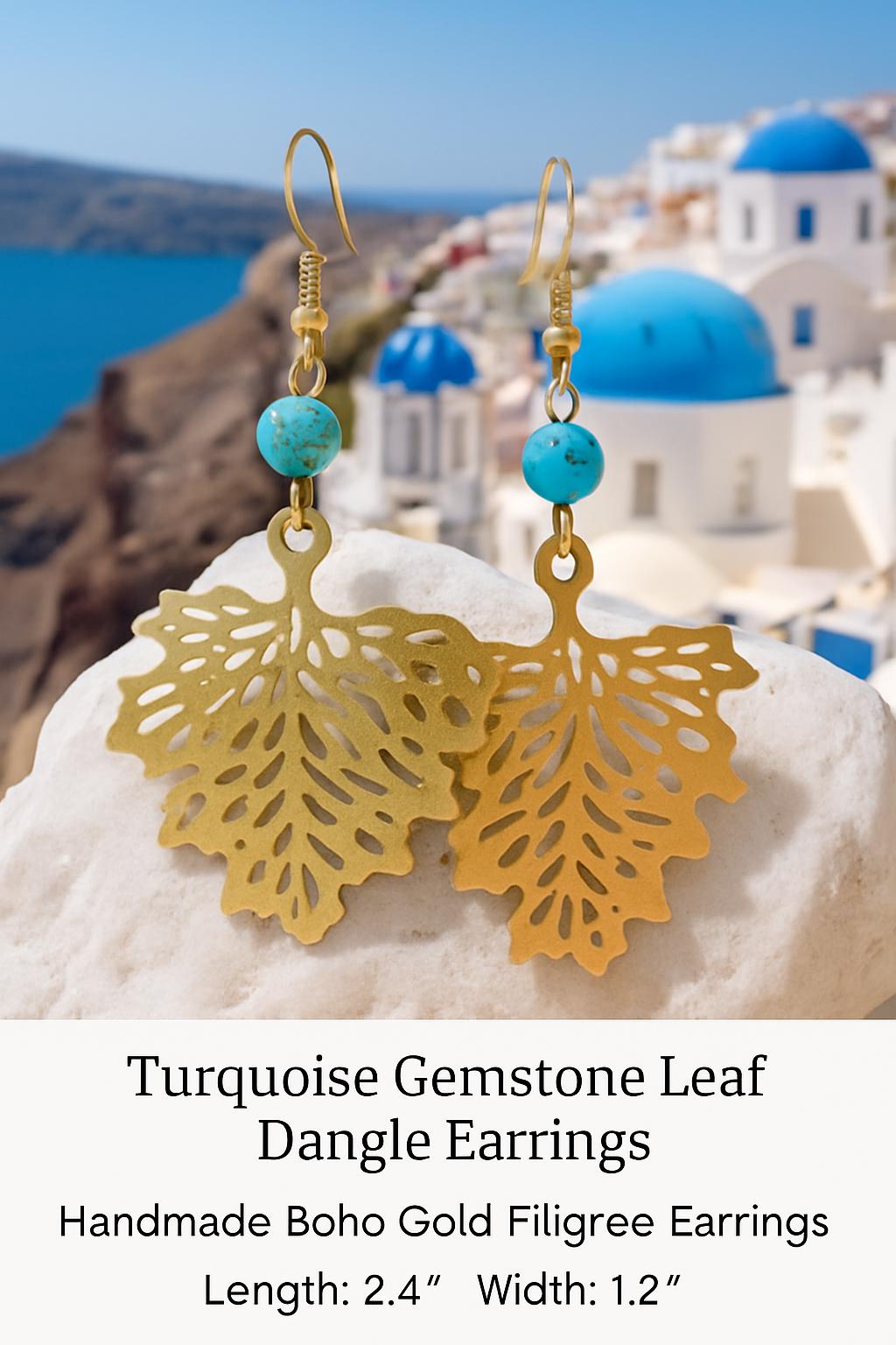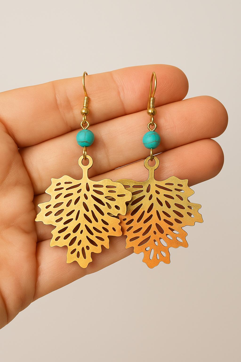 Bring a touch of nature to your look with these stunning bohemian-style leaf earrings. Featuring detailed gold-tone filigree leaf charms paired with a vibrant turquoise-style bead, these lightweight dangles are perfect for any season — especially fall.