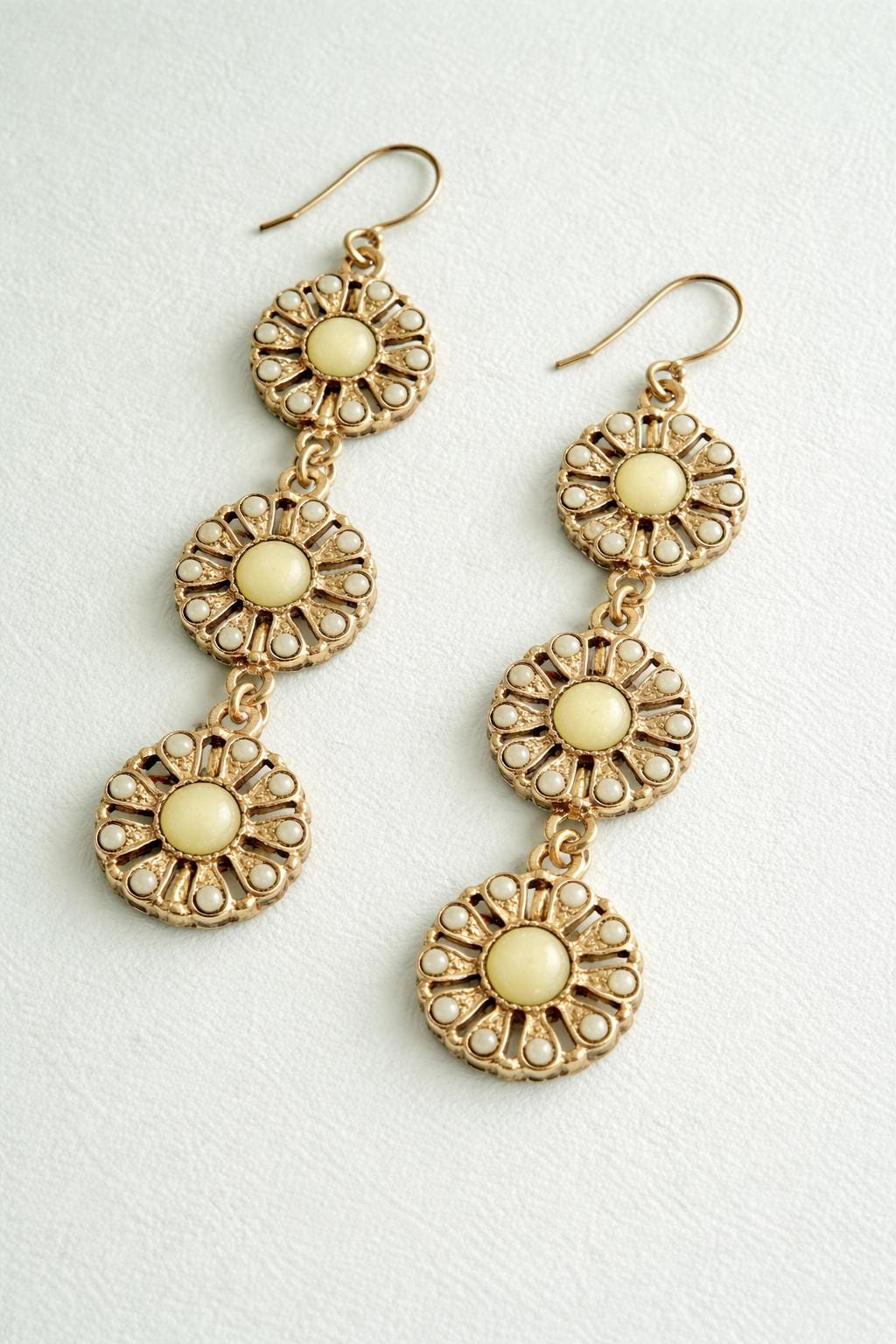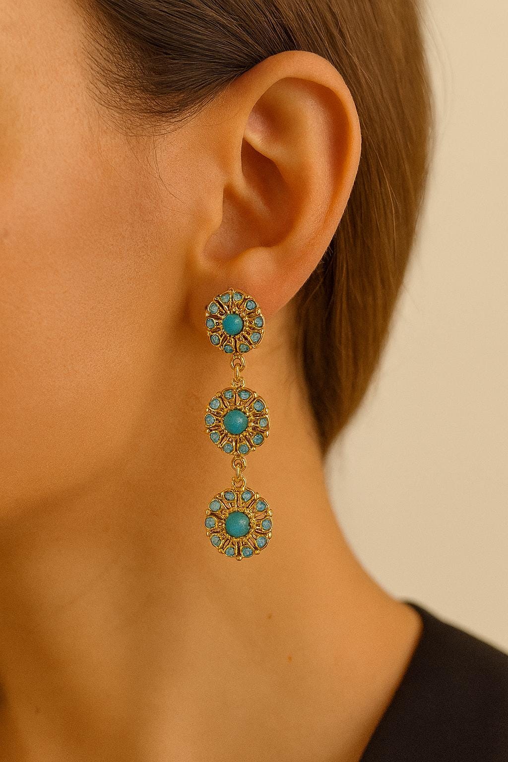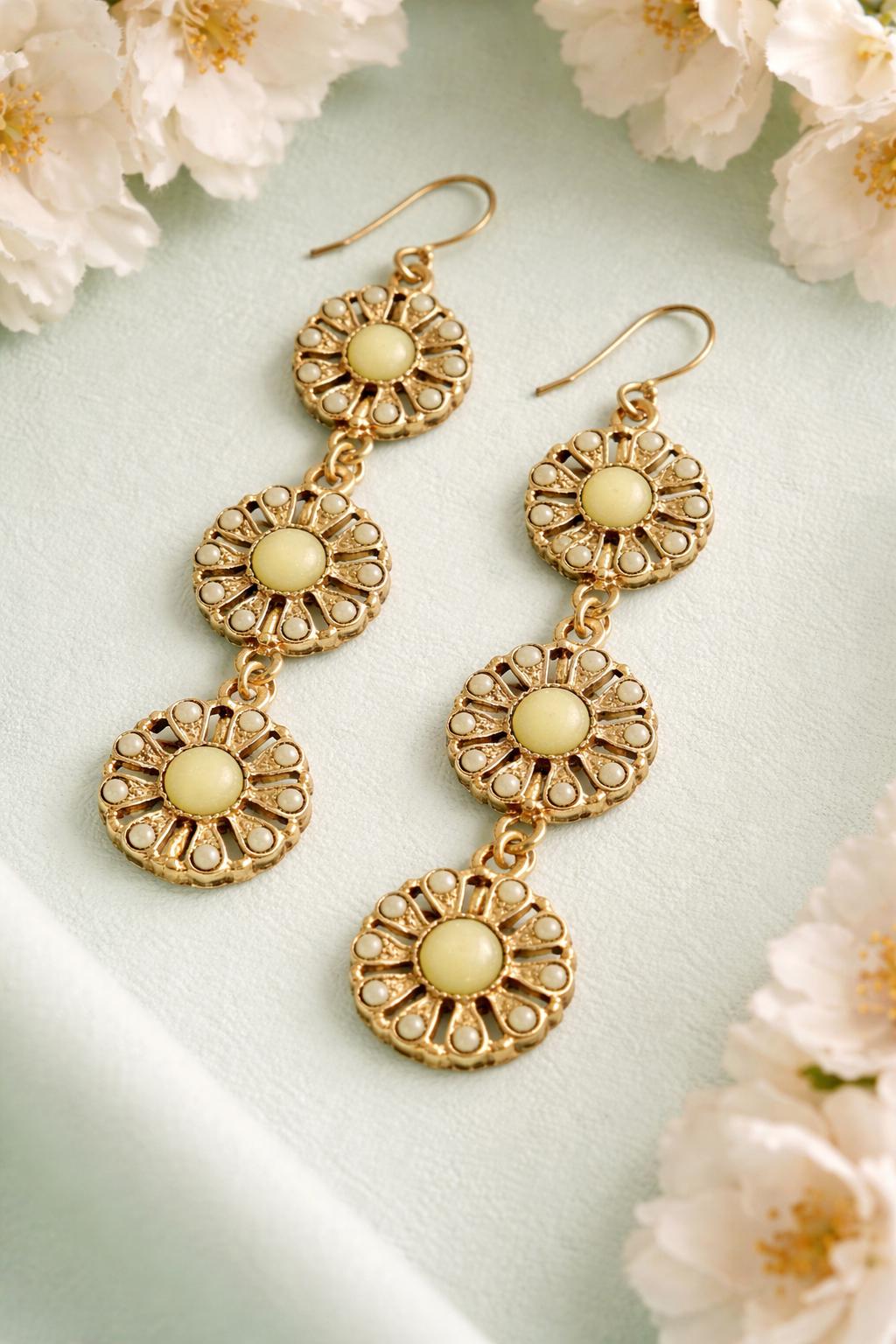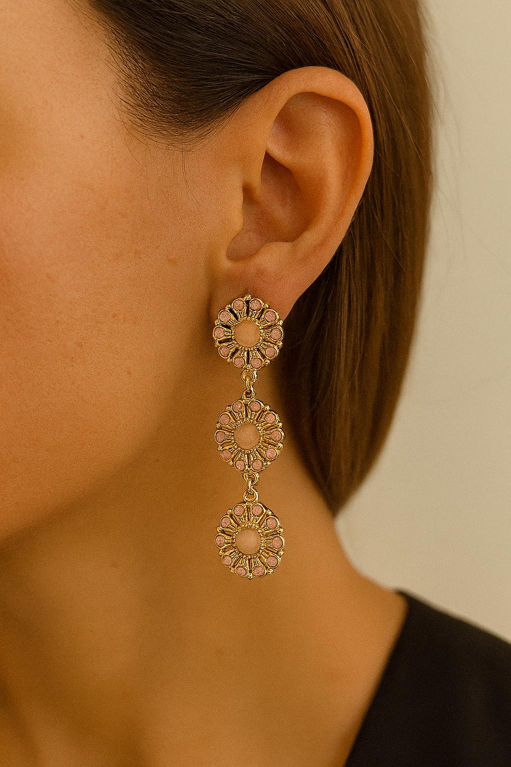 Elevate your everyday look with these stunning boho floral drop earrings, available in blush pink and turquoise blue. Each earring features a vintage-inspired daisy design with intricate petal detailing and a soft gold-tone finish that adds a touch of elegance.