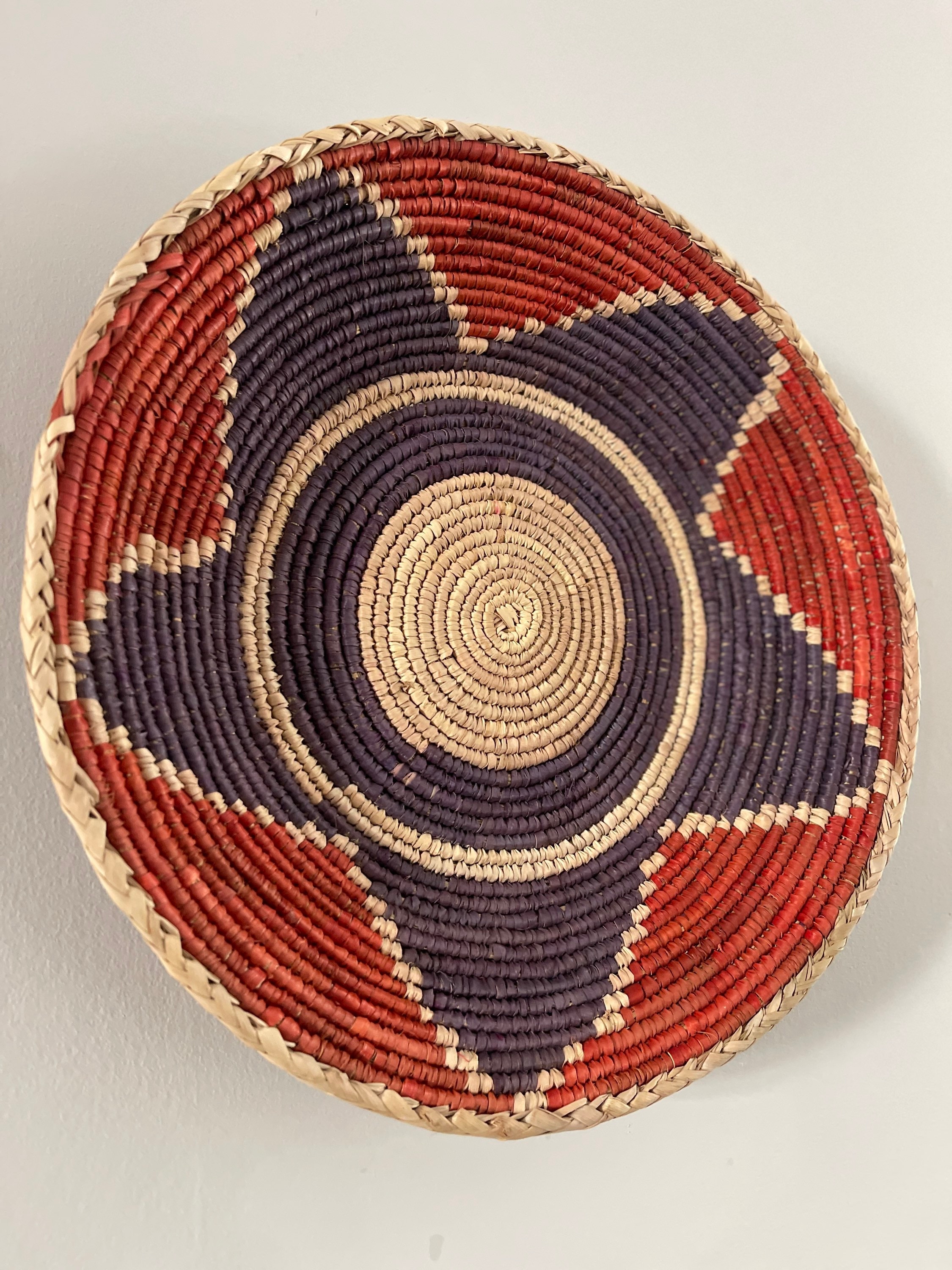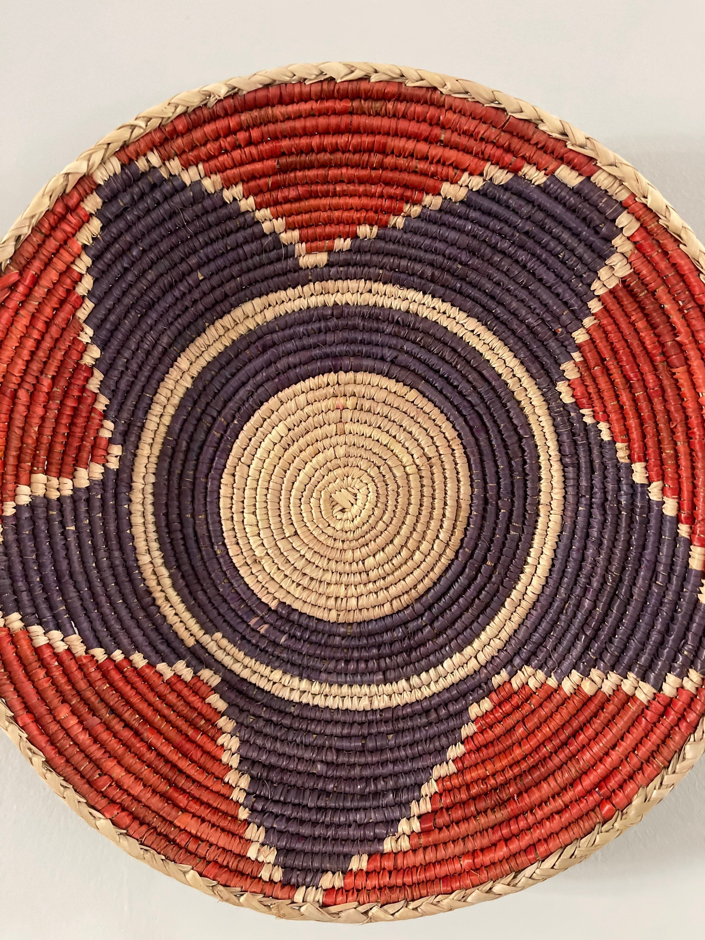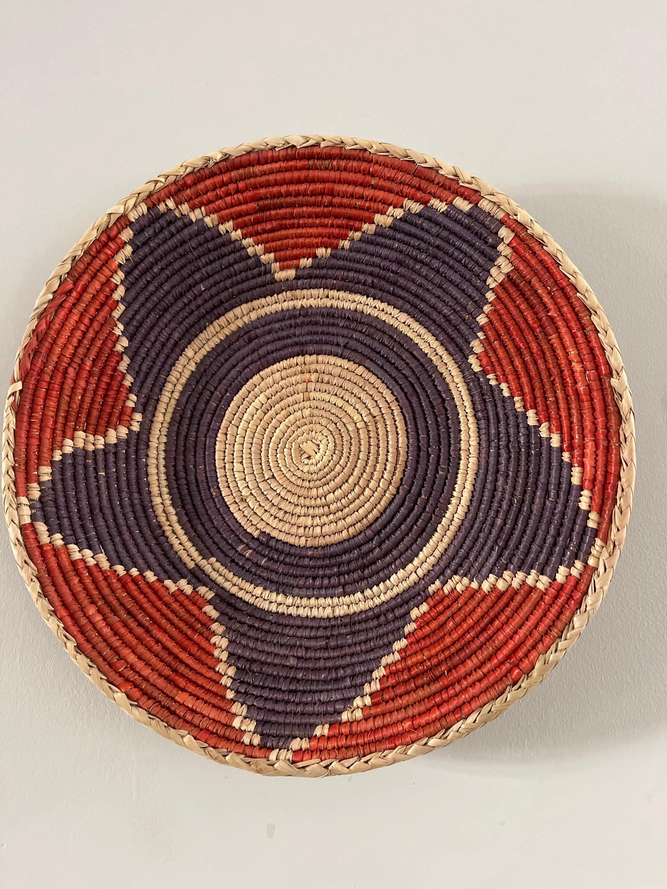 Handmade Red Blue Woven Wall Basket, Handmade Natural Wall Art, Valentines Day Home Gift, Valentines Day Home Decor, Woven Wall Art