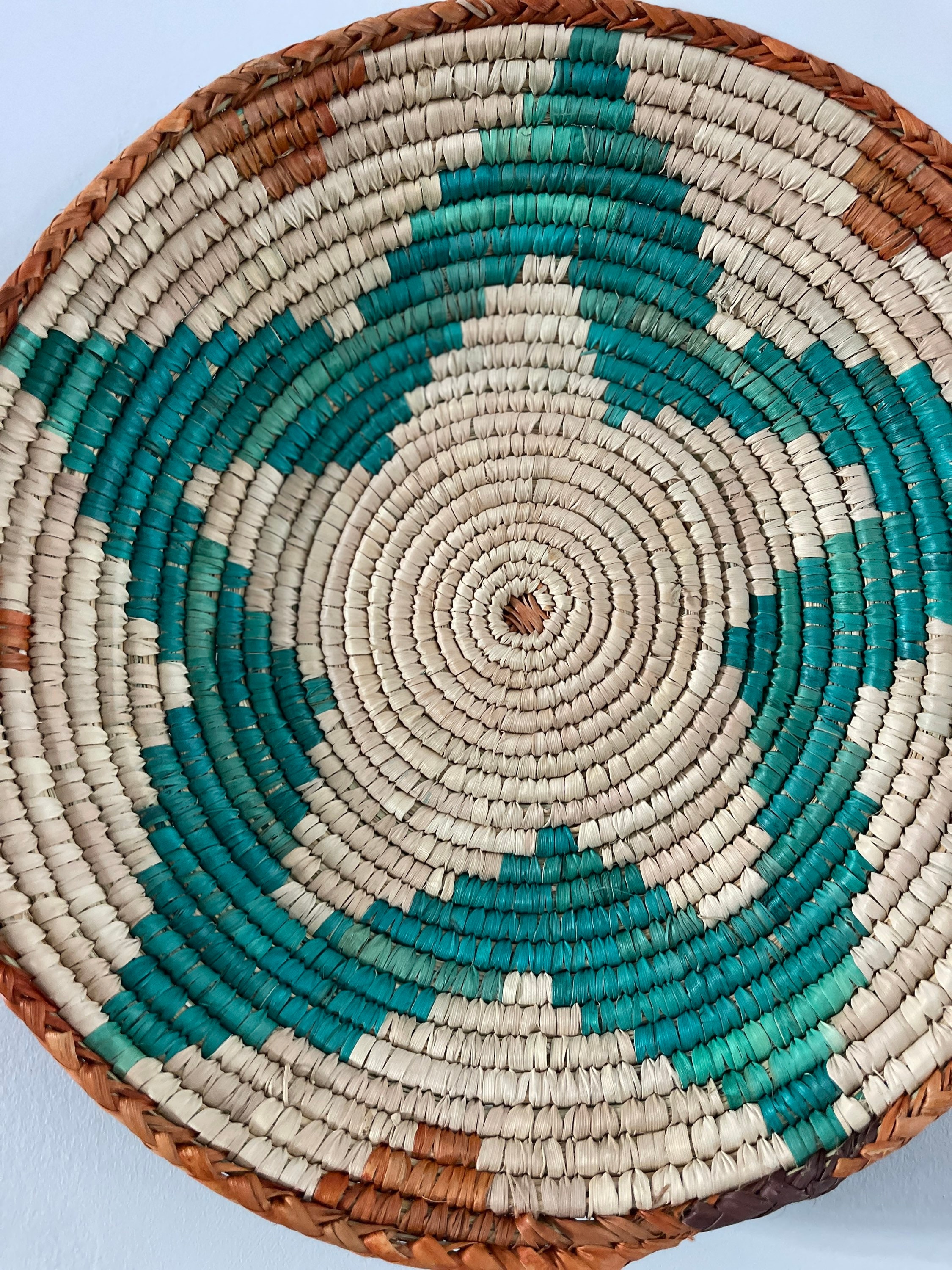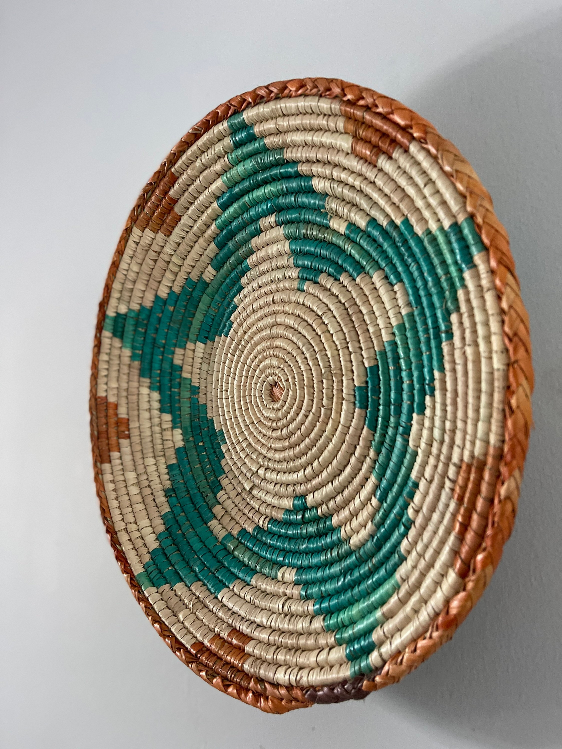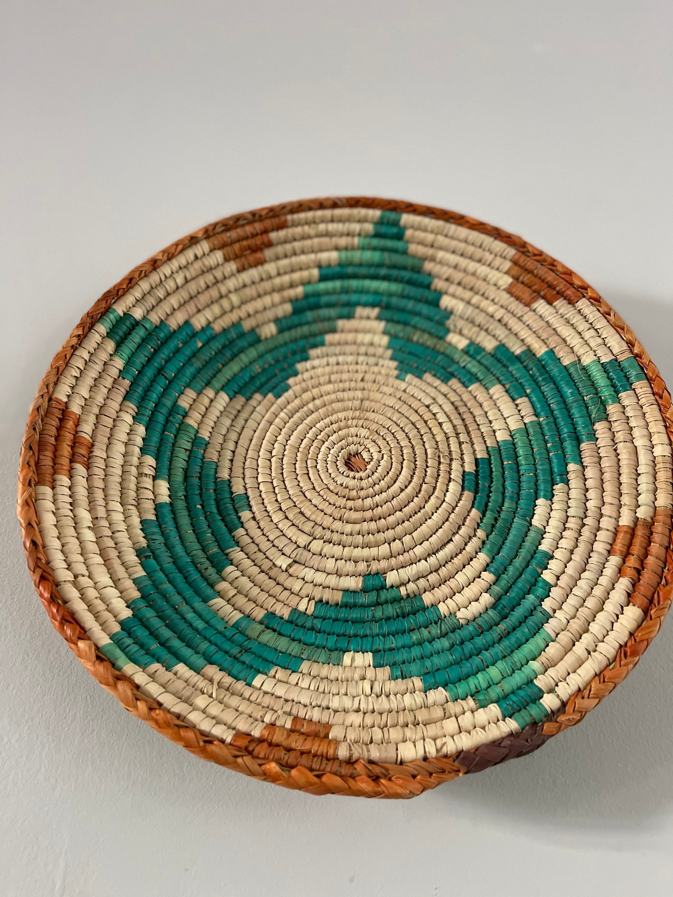 Each wall basket is handmade, resulting in unique variations in size and design. They typically have a diameter of 13-14 inches and a depth of 2-3 inches, although sizes may vary slightly. These baskets often come with a loop attached, making them easy to hang on walls.