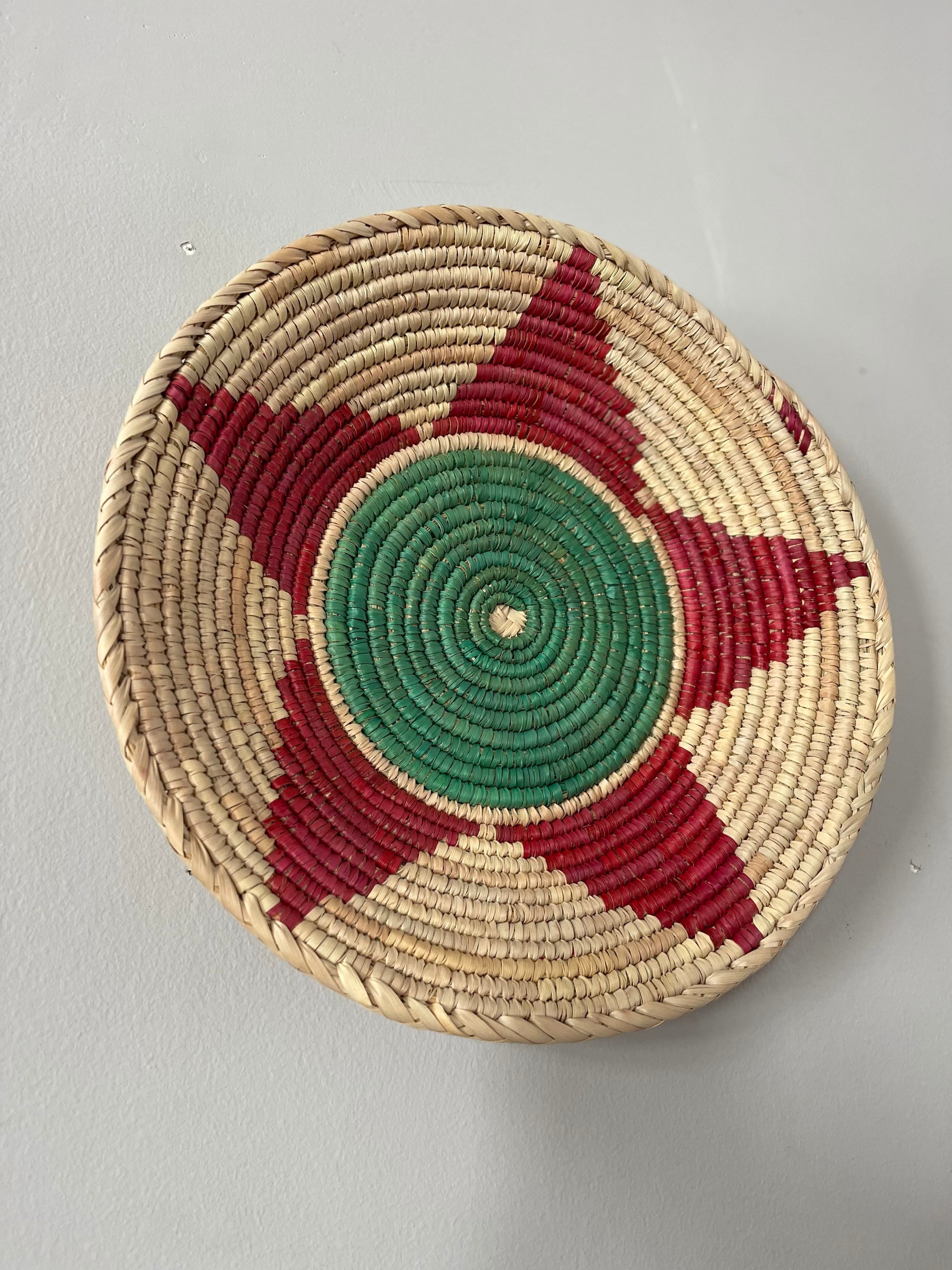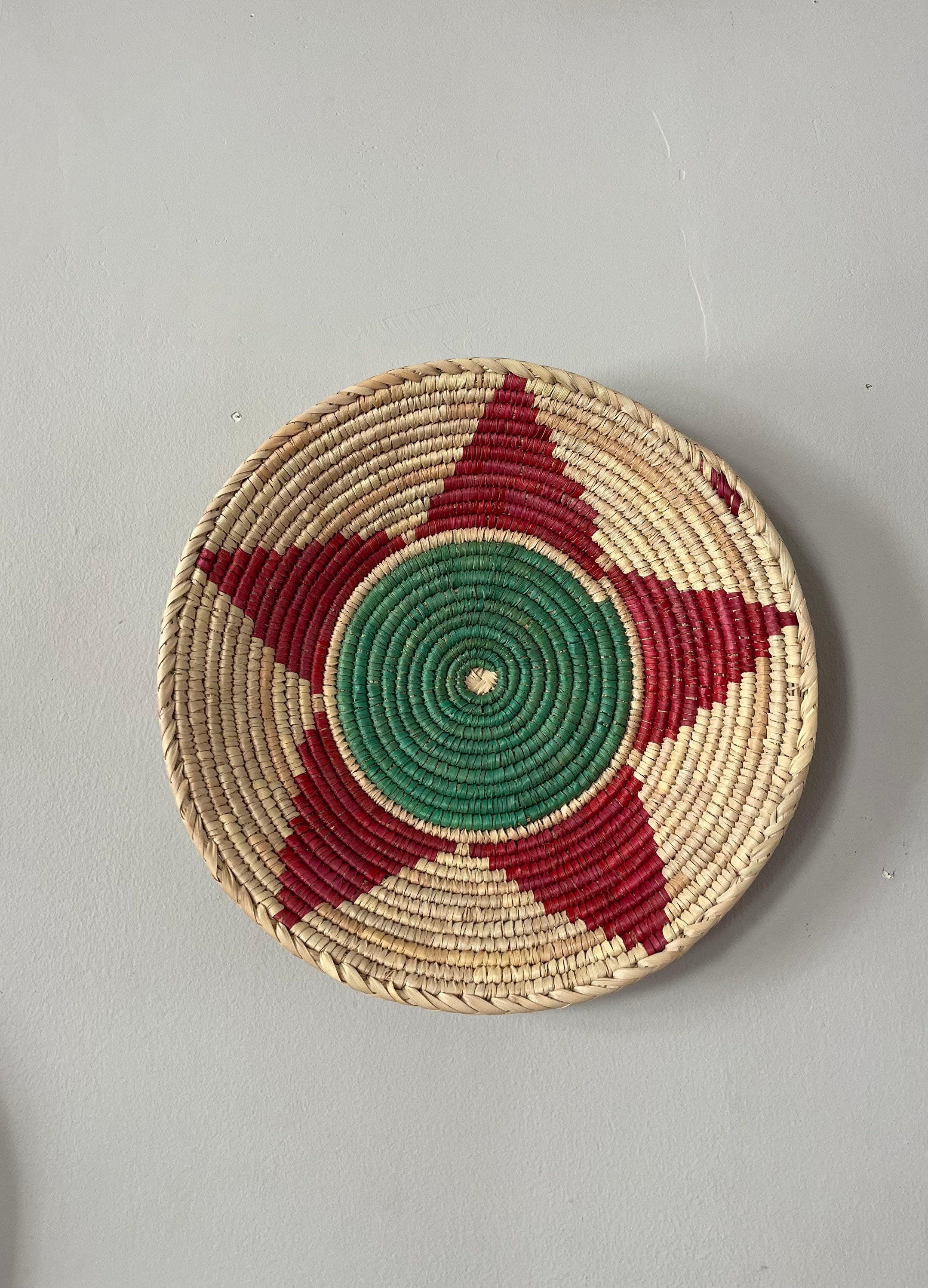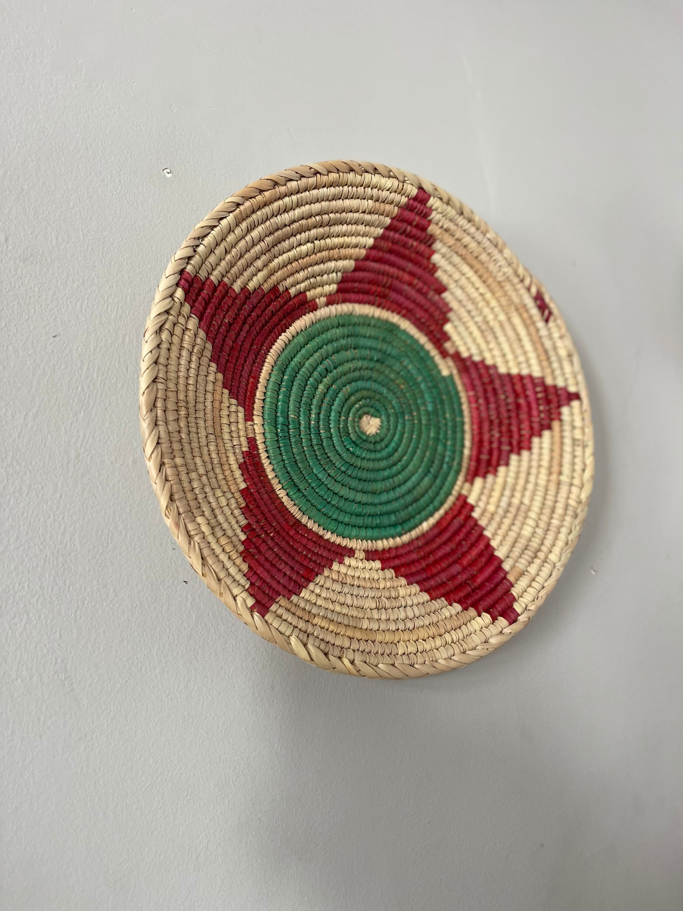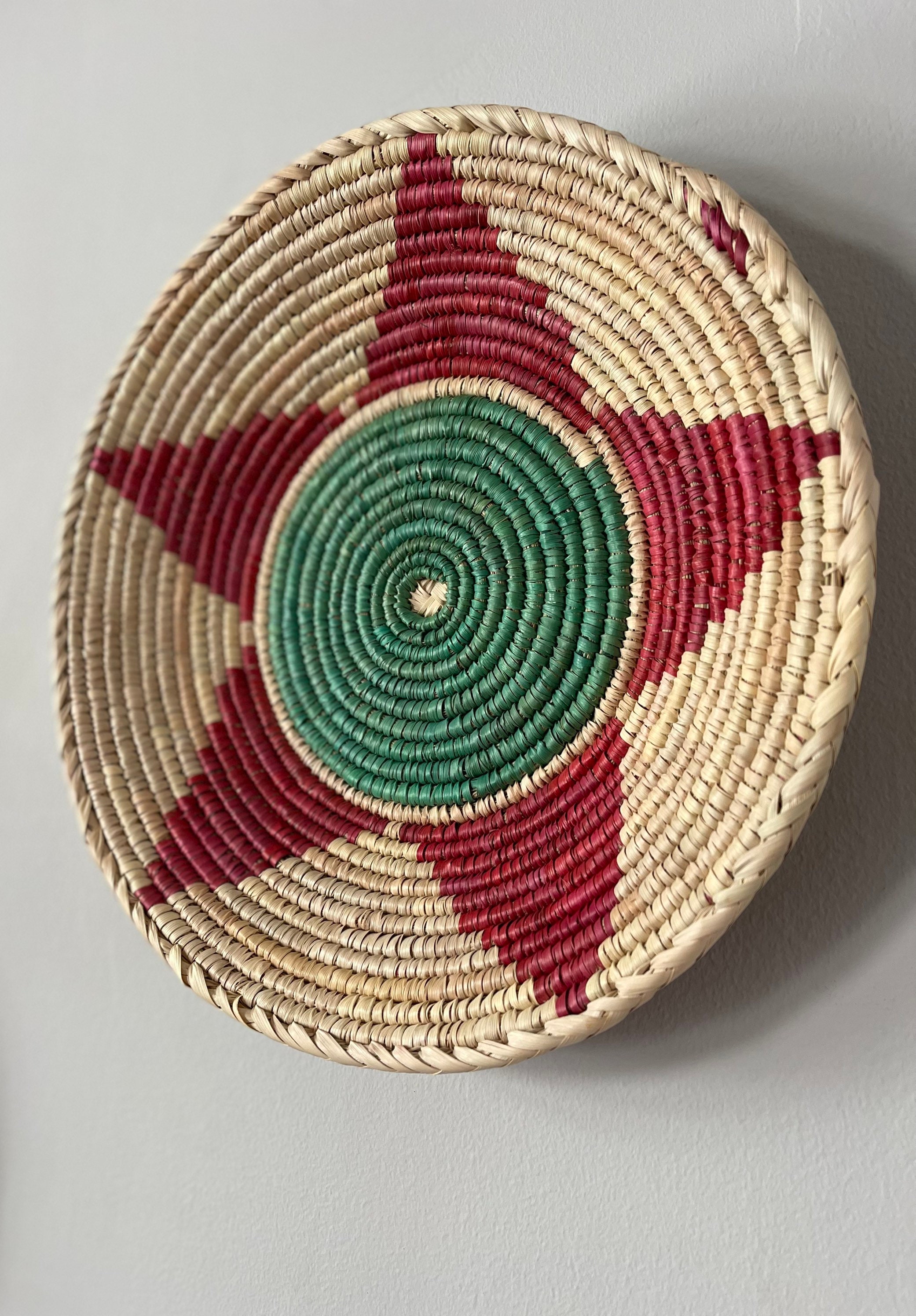 Red Green Boho Decor, Handwoven Wall Basket Decor, Boho Woven Wall Art, Natural Home Decor, Rustic Wall Hanging, Valentines Day Gift for Her