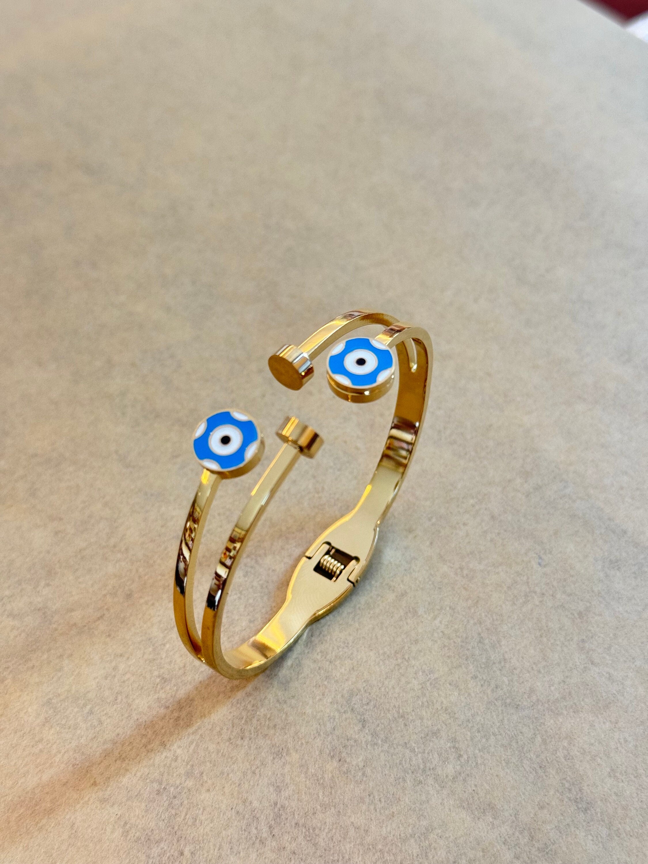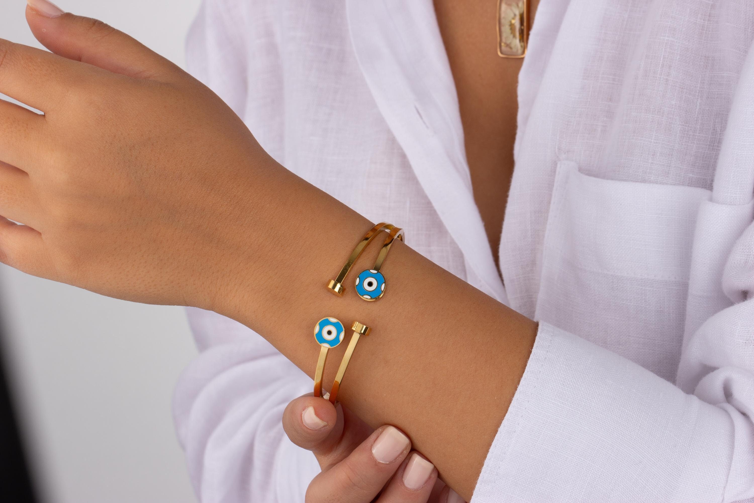 Handmade Evil Eye Cuff Bracelet – Gold Plated Turkish Jewelry