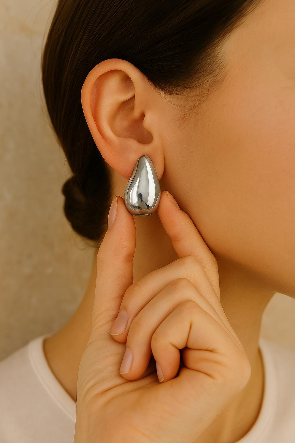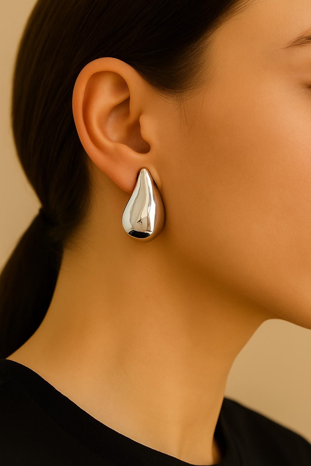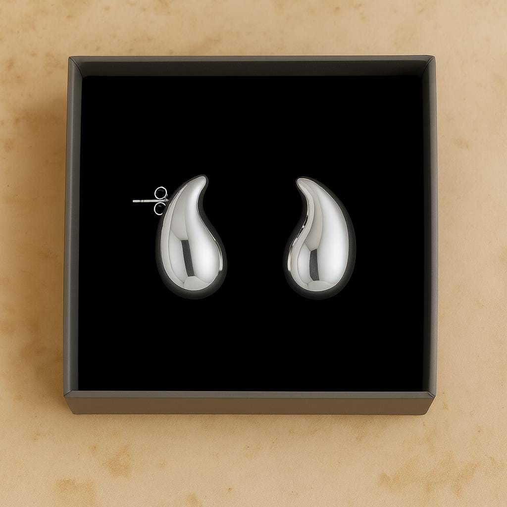 These Silver Water Drop Earrings feature a smooth, fluid teardrop shape that adds an effortless modern elegance to any outfit. Their sculptural, reflective surface catches the light beautifully, making them a standout accessory for both day and night looks.