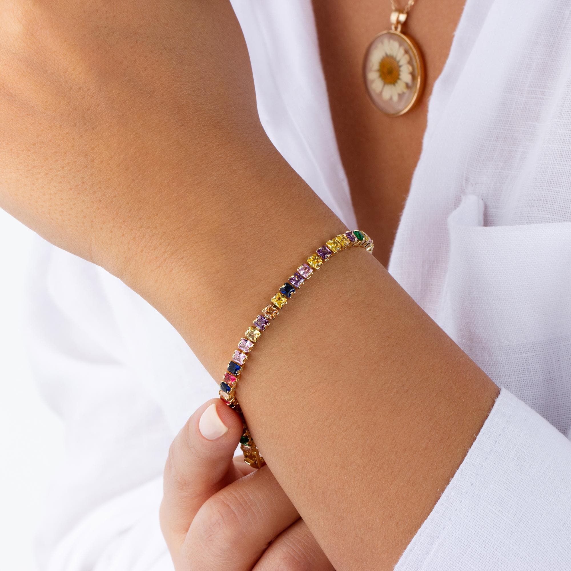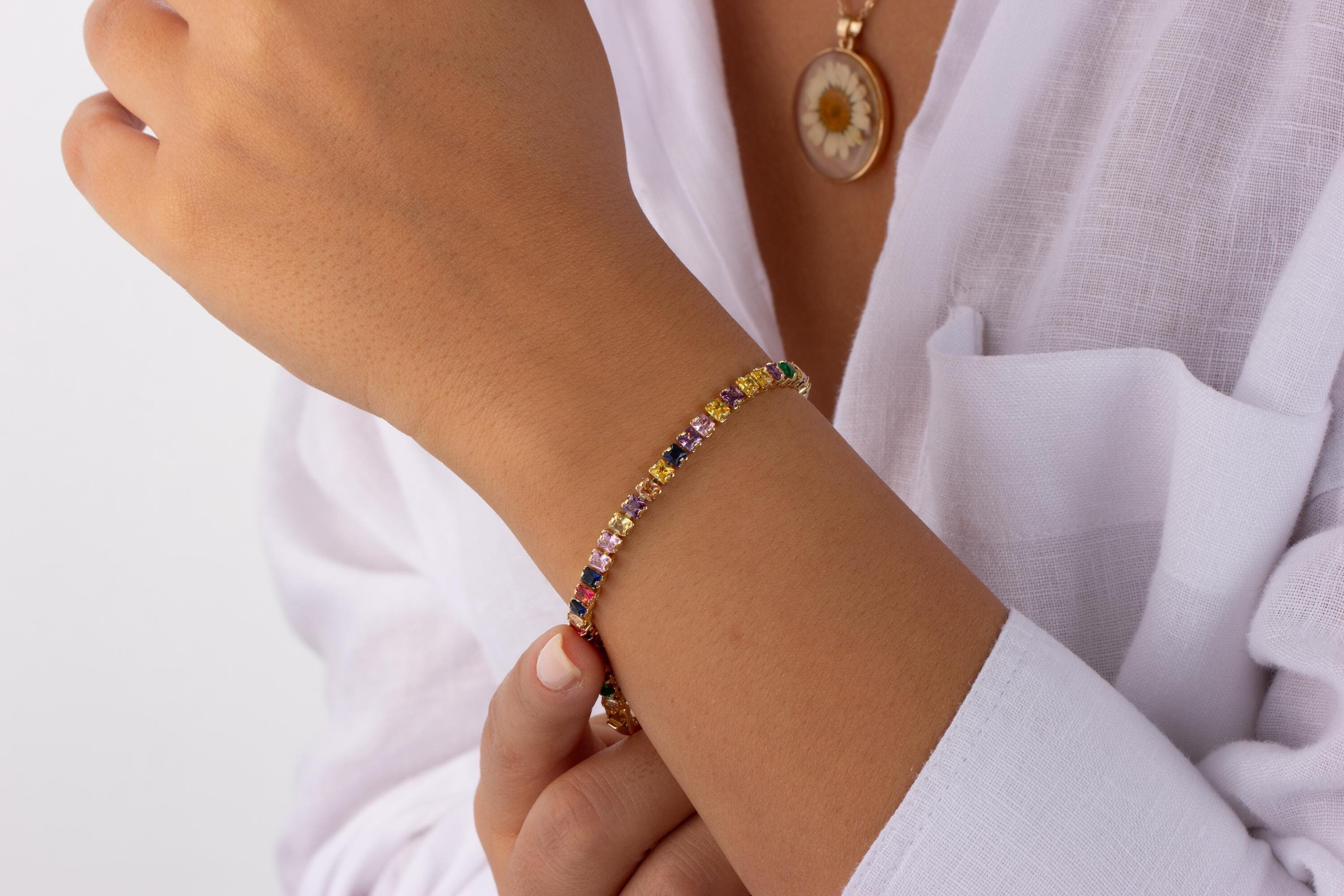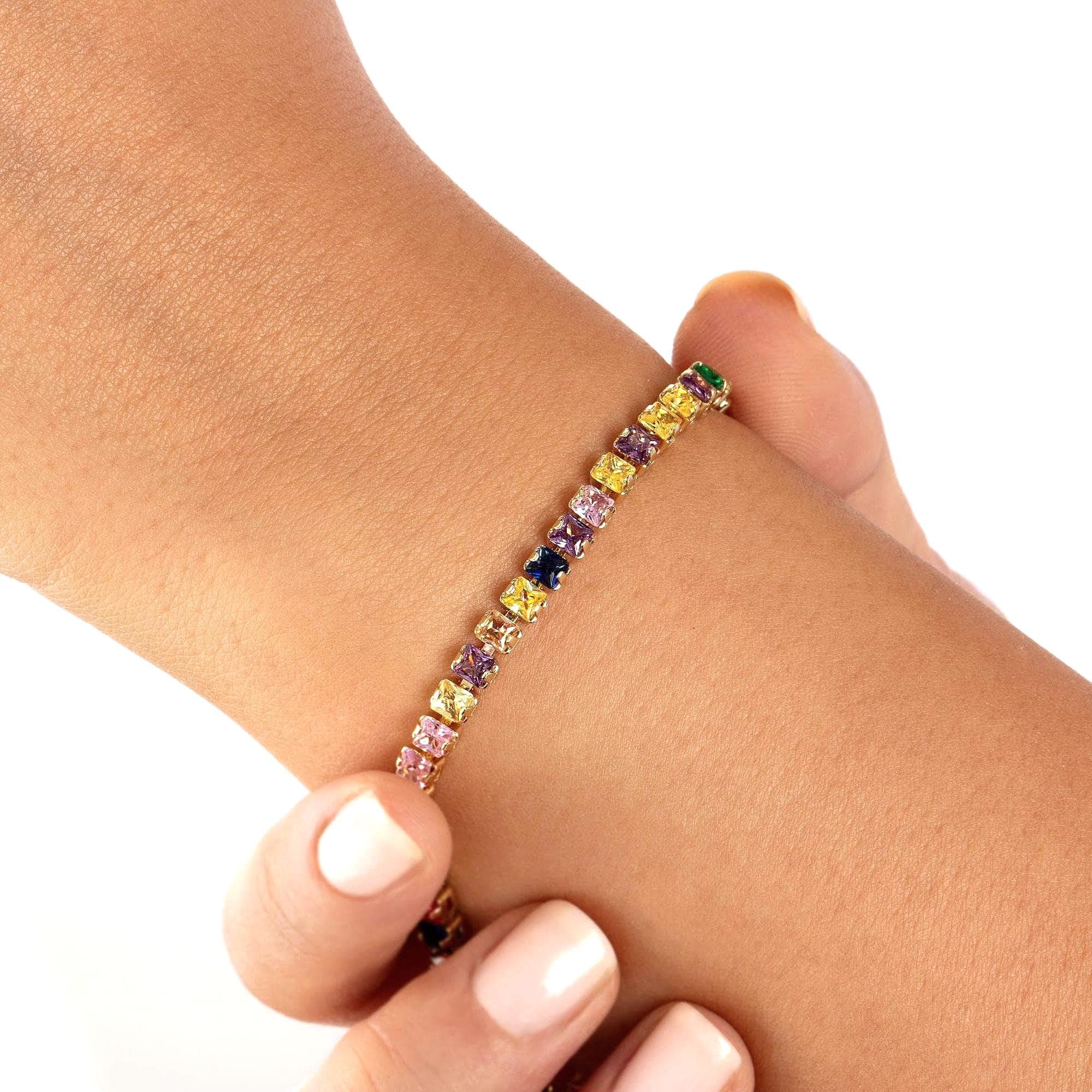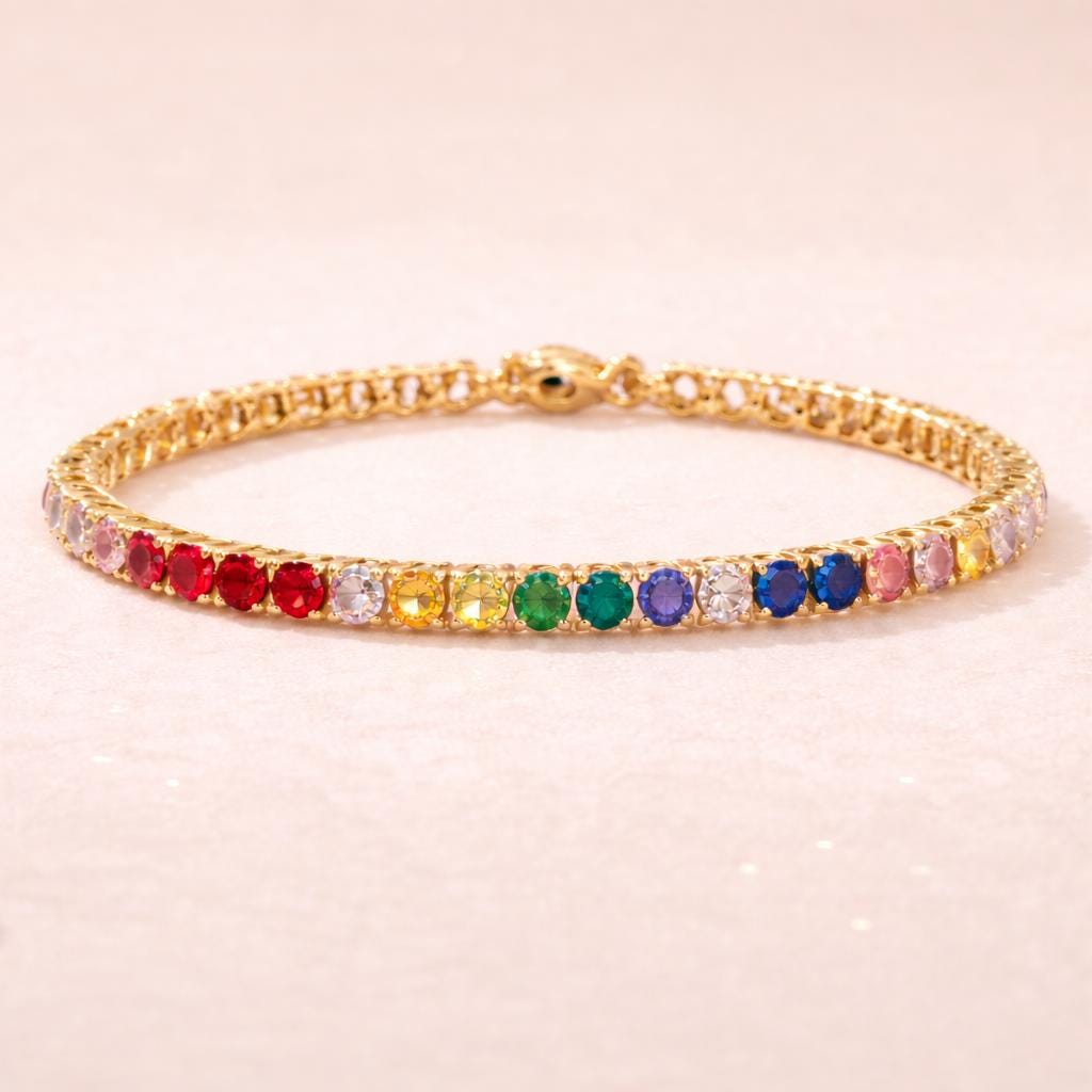 Gold Double Rainbow Tennis Bracelet – Perfect for Valentine’s Day and Unique Gifts For Her