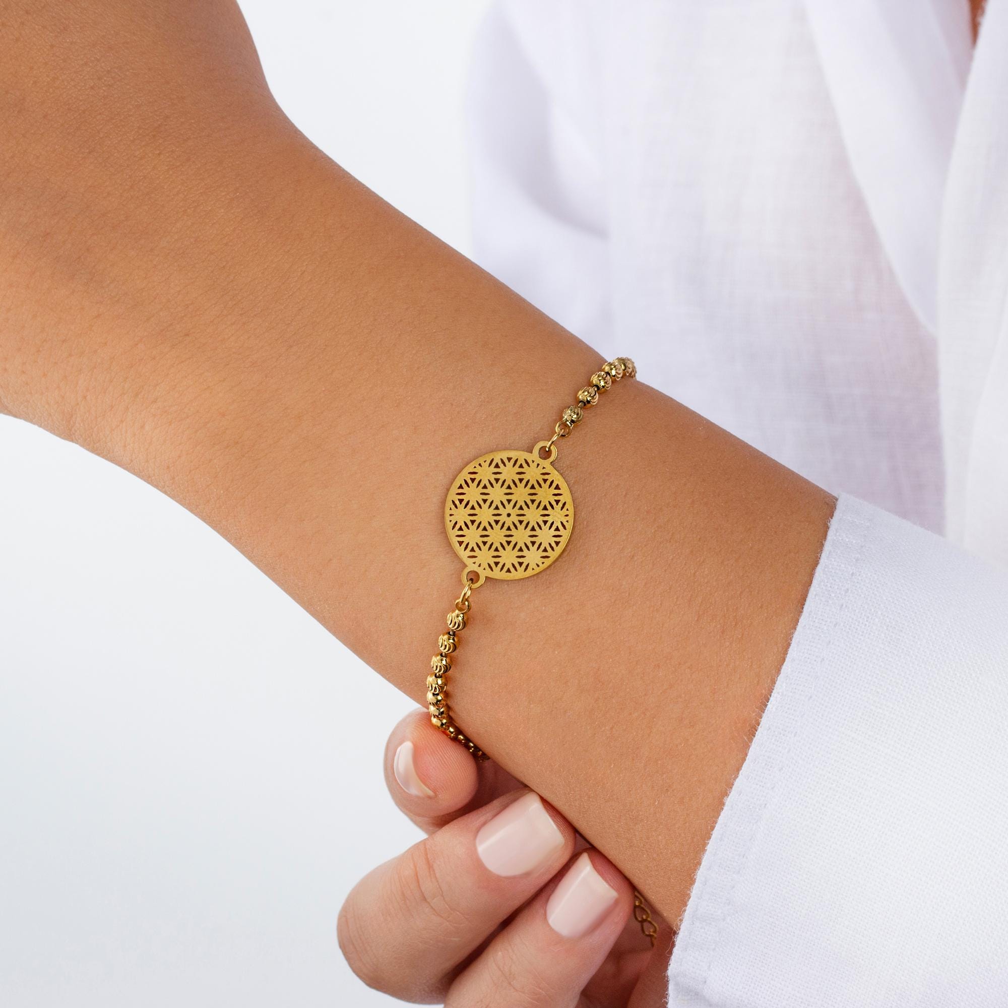 Elevate your style with this gold-plated Flower of Life Bracelet, a timeless piece that blends spiritual significance with minimalist elegance. Inspired by the ancient Flower of Life symbol, this bracelet represents unity, balance, and the interconnectedness of all life—making it more than just jewelry; it's a source of inspiration and positive energy.