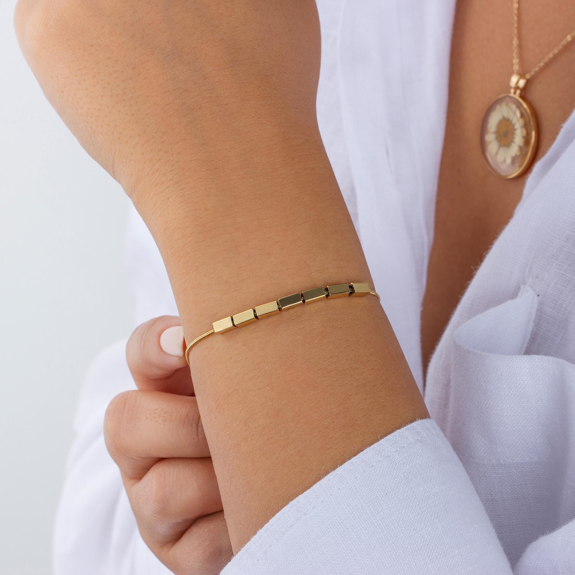 Yellow Gold Rectangular Bar Link Bracelet – Handmade Minimalist Jewelry
