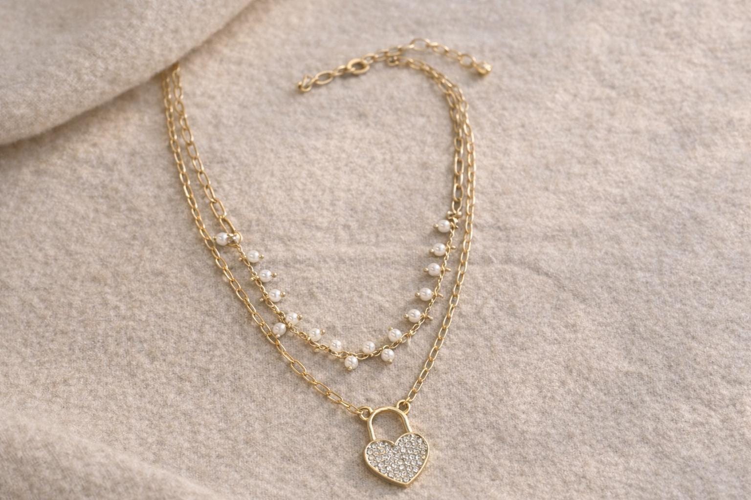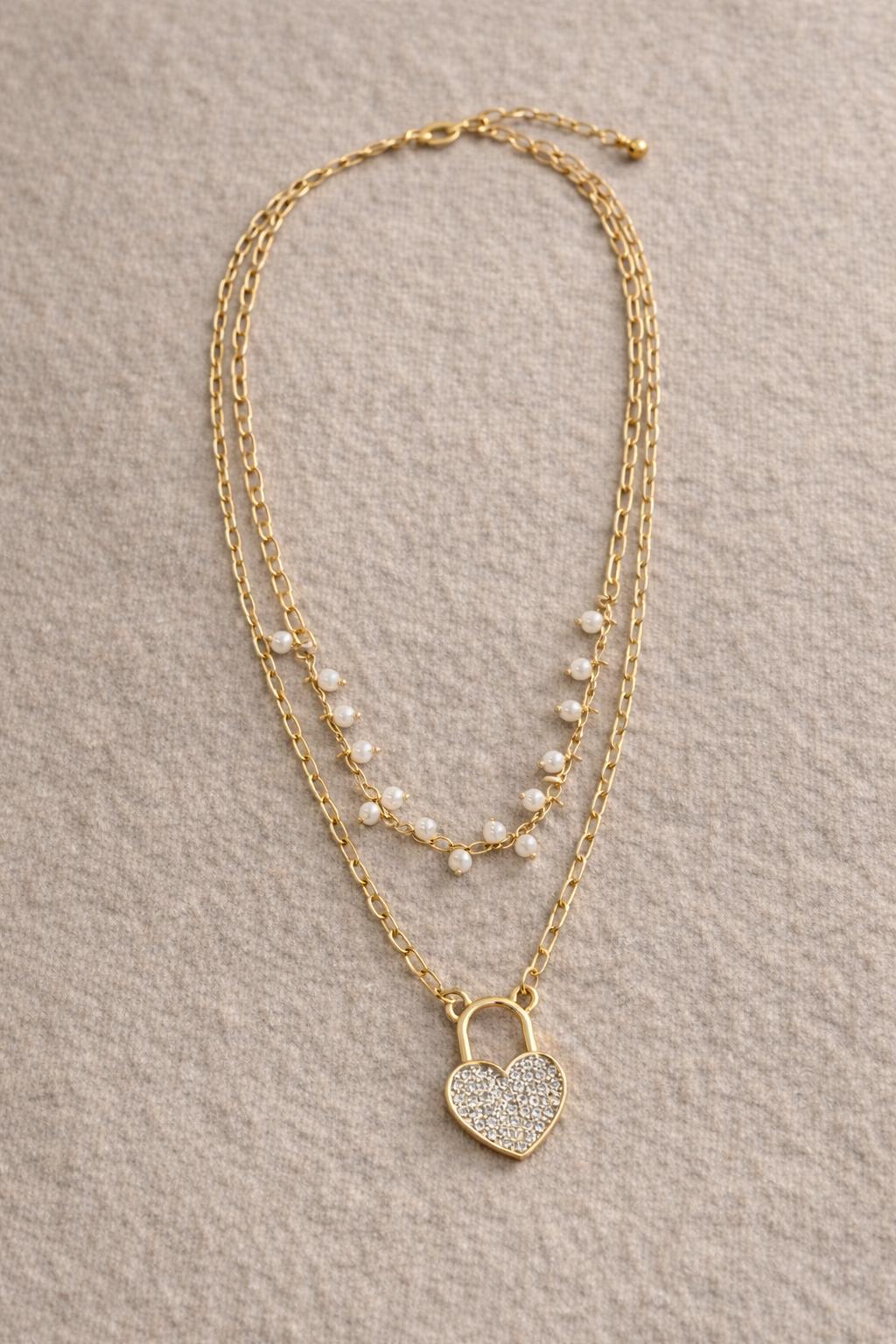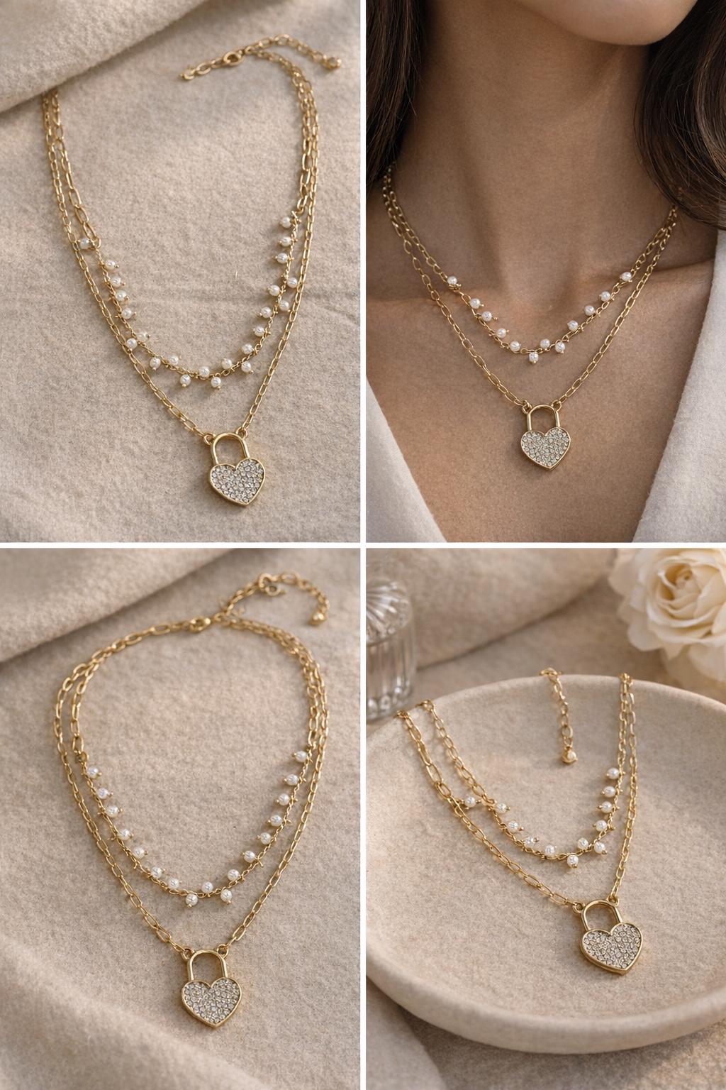 ✨ Elegant Pearl Heart Lock Layered Necklace ✨