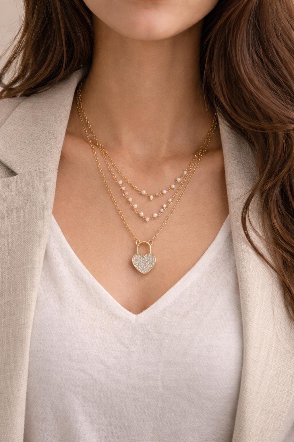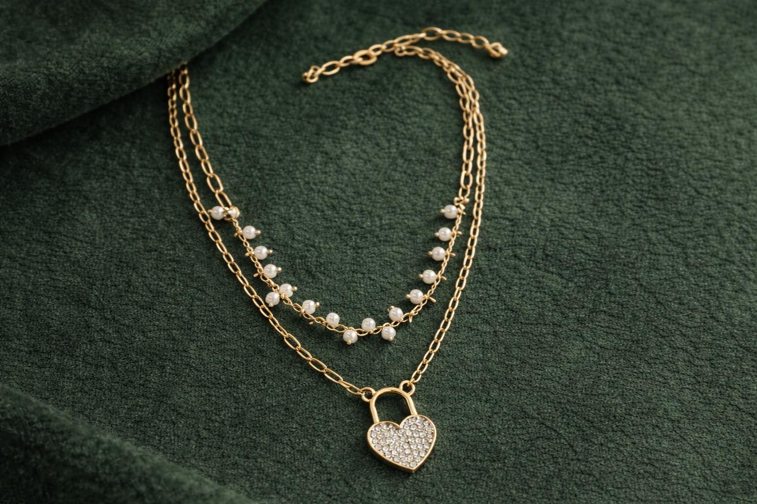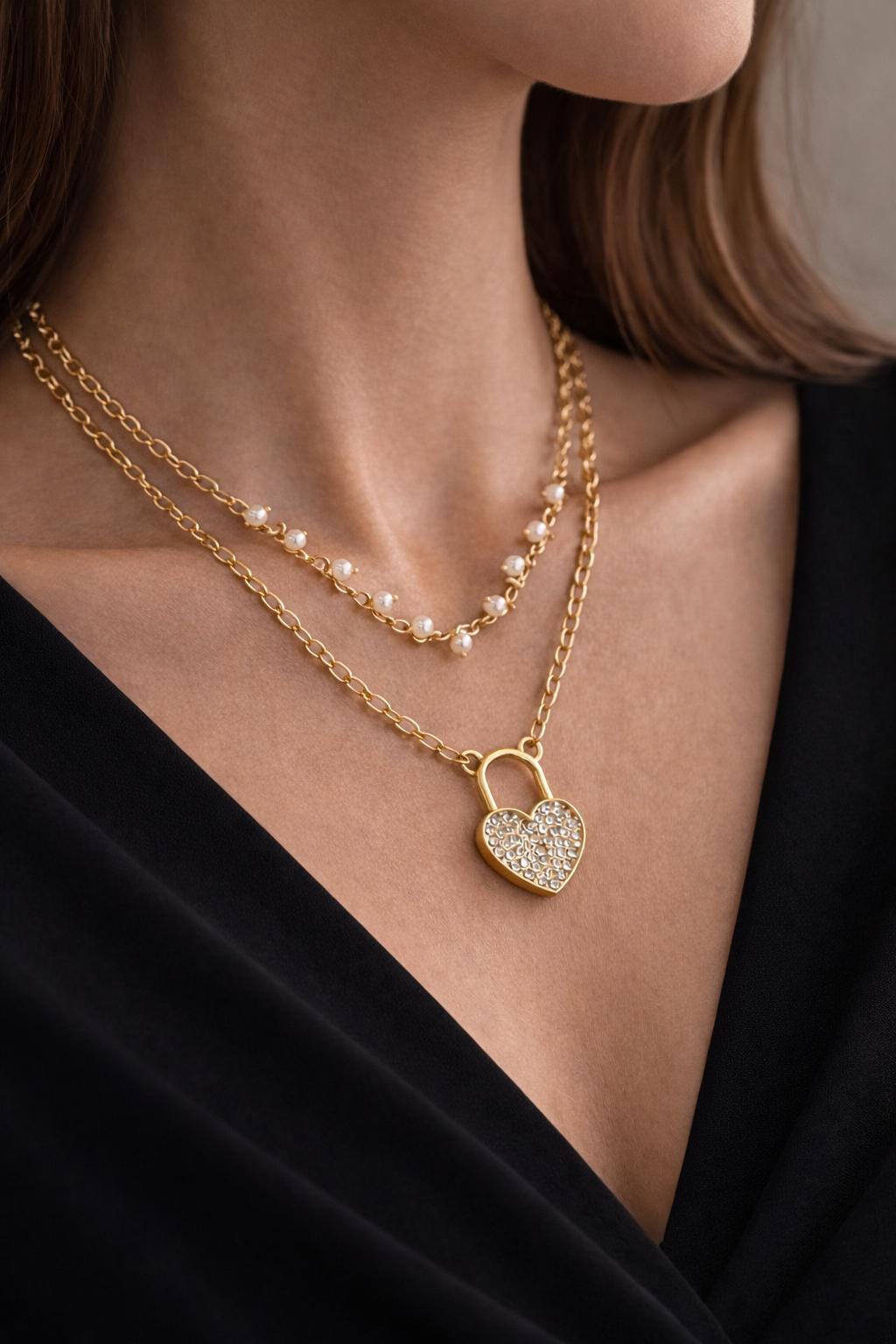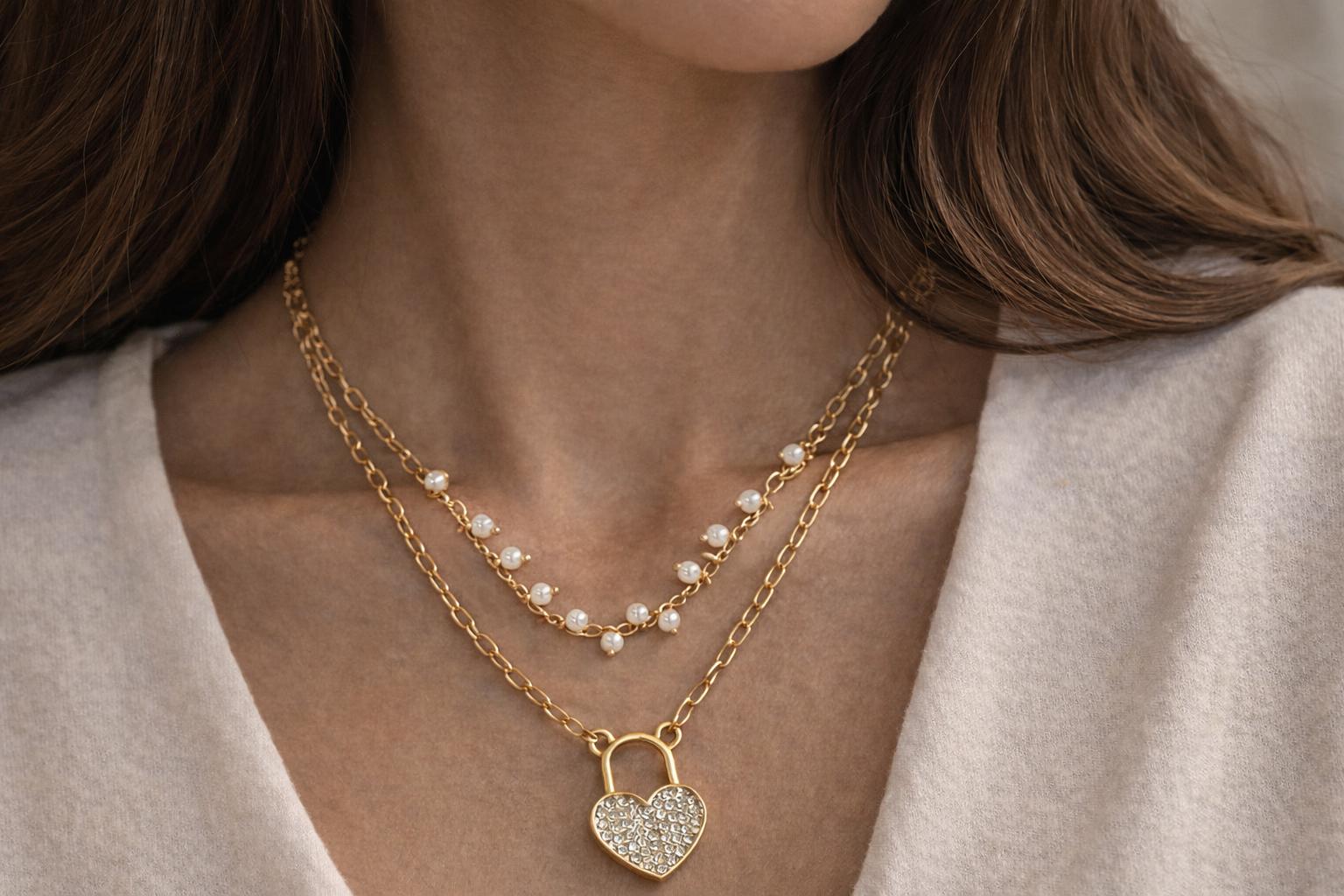 ✨ Elegant Pearl Heart Lock Layered Necklace ✨