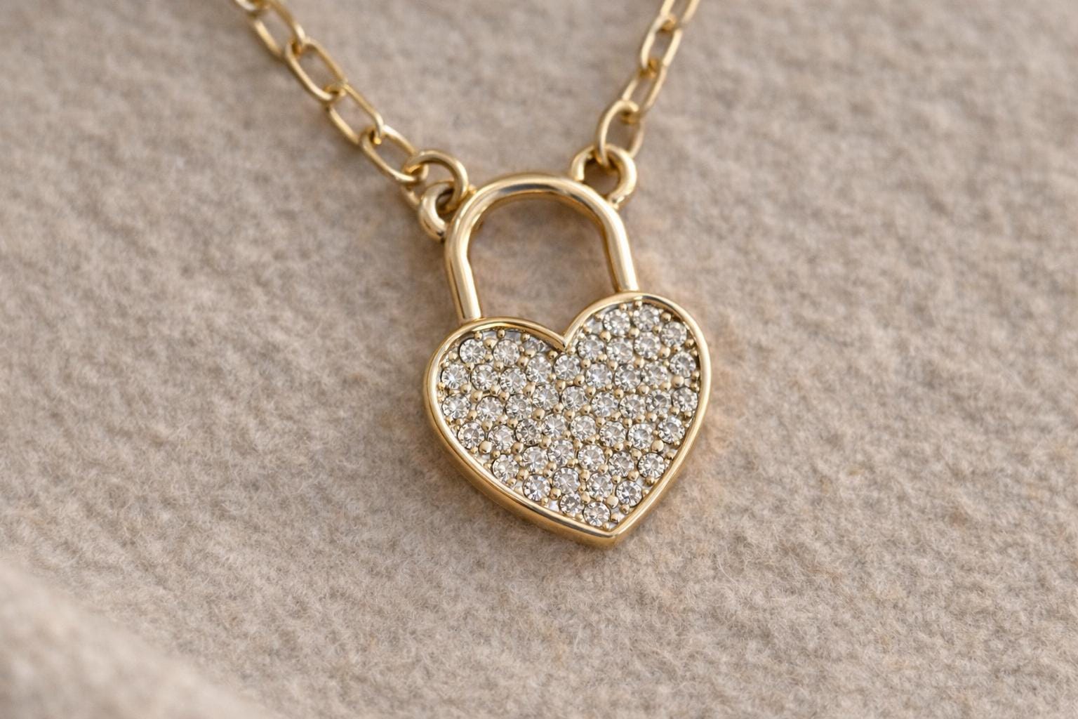Romantic heart lock design with cubic zirconia sparkle