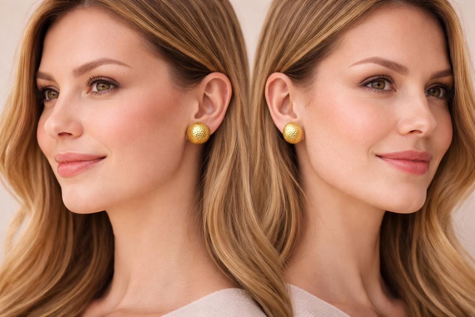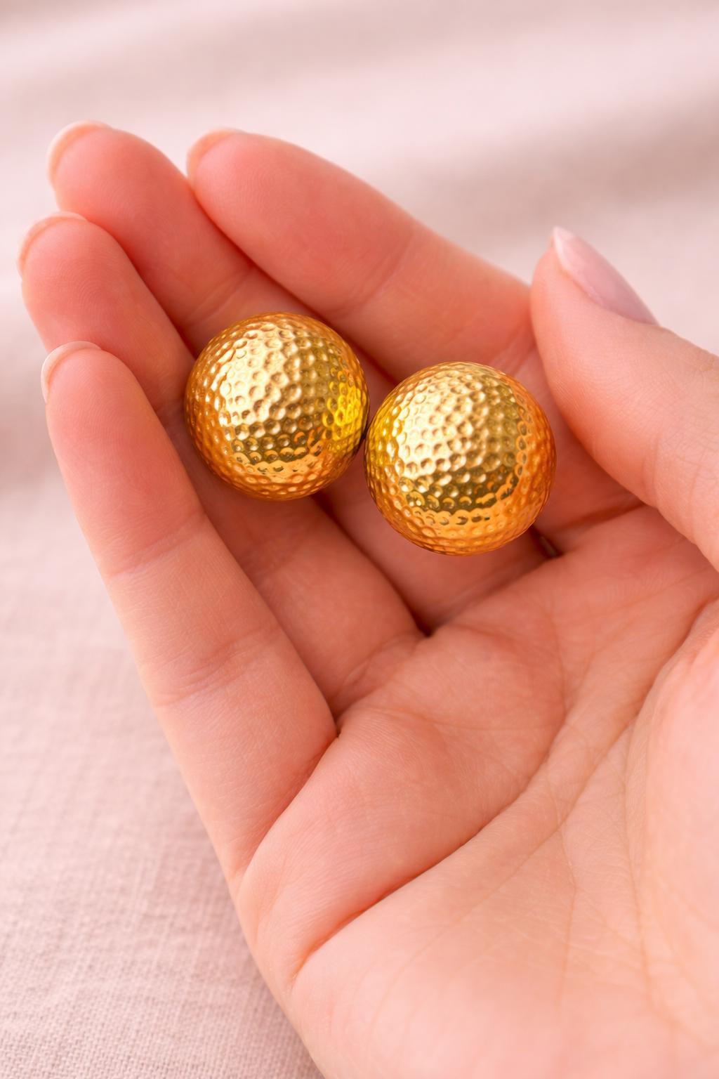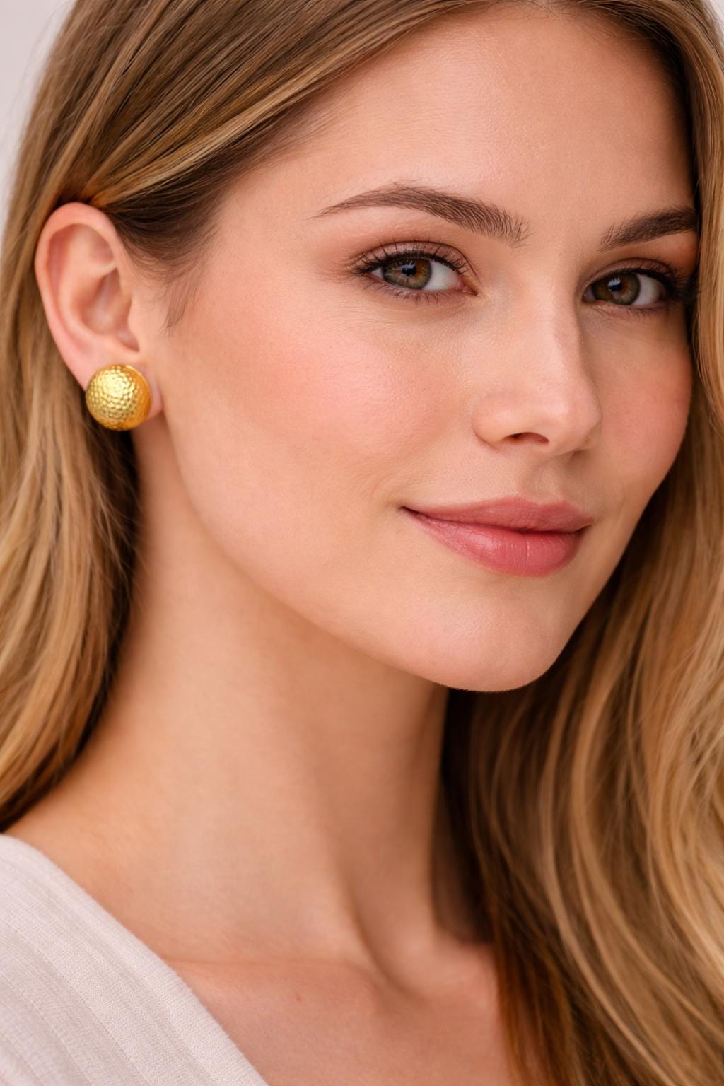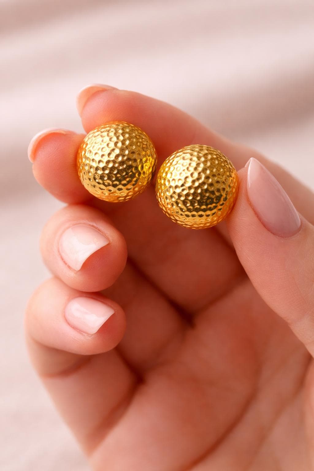 These sculpted dome stud earrings feature a hammered textured surface that catches the light beautifully. A perfect blend of modern minimalism and statement style, designed for women who love effortless sophistication.